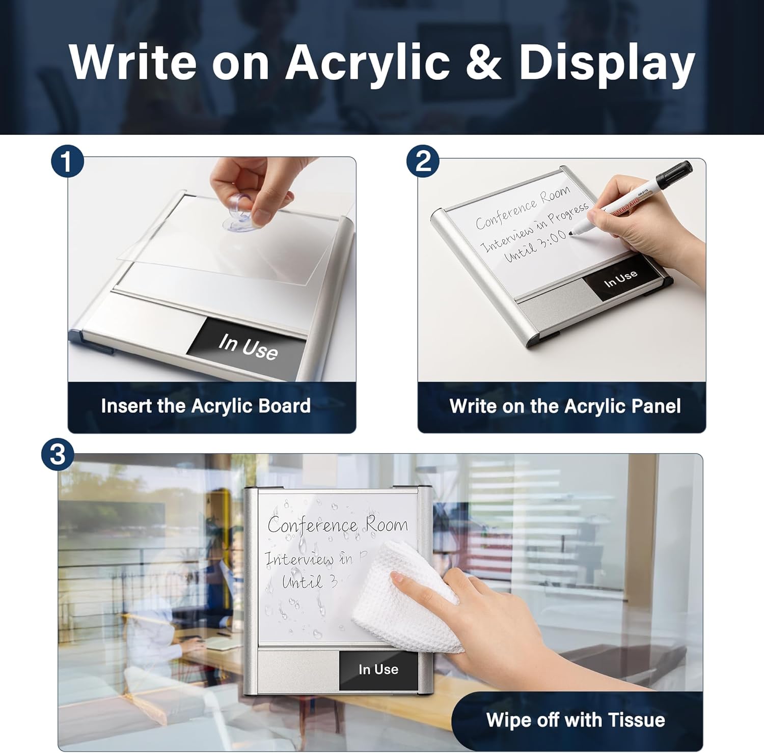 - Bold Colors for Instant Visibility – While some signs fade into the background, our clear, bold color indicators ensure that room availability is visible from across the hall, preventing confusion and interruptions.