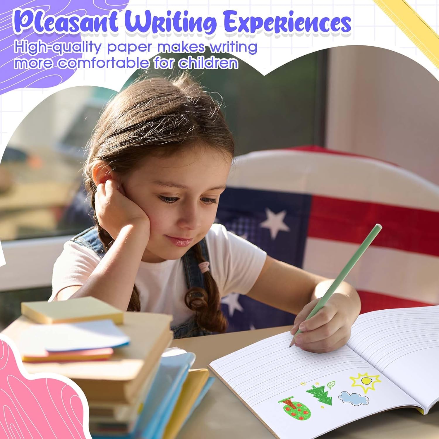 - Ample Space to Express: experience 120 thickened pages of our primary composition notebook for kids in K-2 grade, providing your little ones with an ample space to express their ideas; This educational tool supports children's writing and drawing skill development by offering vast room to jot down concepts, embark on art projects, and more