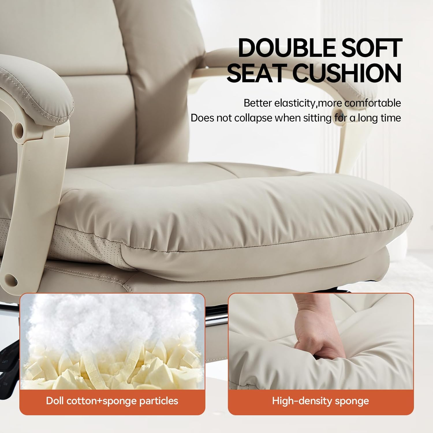 EMIAH Office Chair with Foot Rest, Ergonomic Executive Office Chair with Arms, Reclining High Back PU Leather Comfy Swivel Computer Desk Chairs with Wheels and Lumbar Support for Home Office, Beige