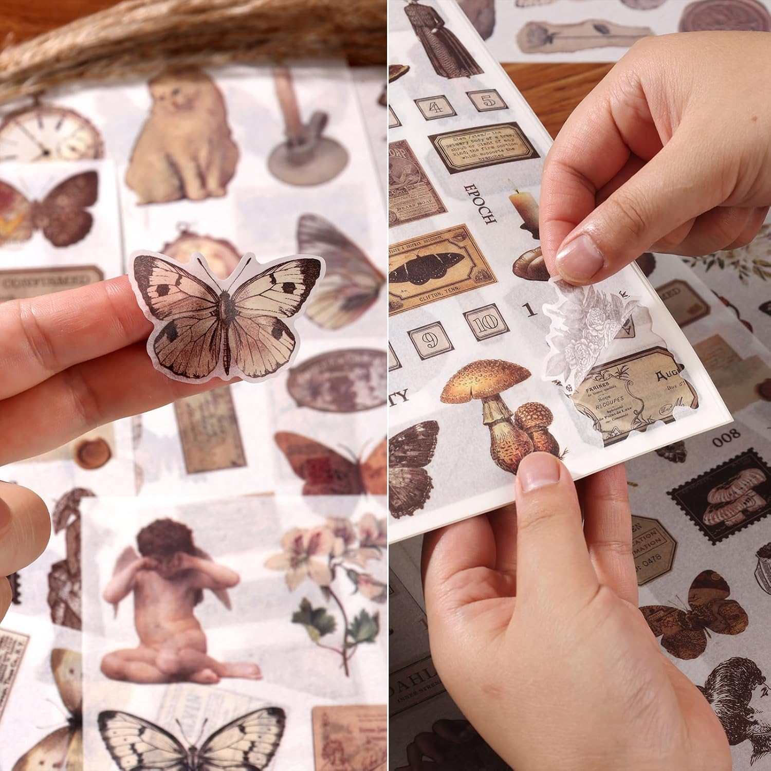 Vintage Ephemera Sticker 24 Sheets 480 precut washi Stickers Paper Journal Stickers for Adults Junk Journal Sticker Book Scrapbooking Supplies