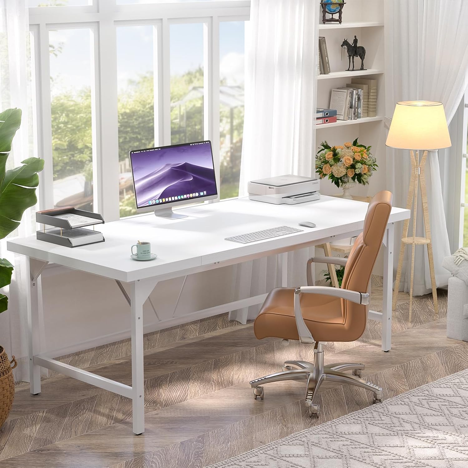 Unikito Large Office Desk, 70.8 x 31.5 Inch Extra Long Executive Computer Desk, Heavy Duty 2 Person Desk, Premium Super Thick Study Writing Table Computer Tables for Home Office Workstations, White