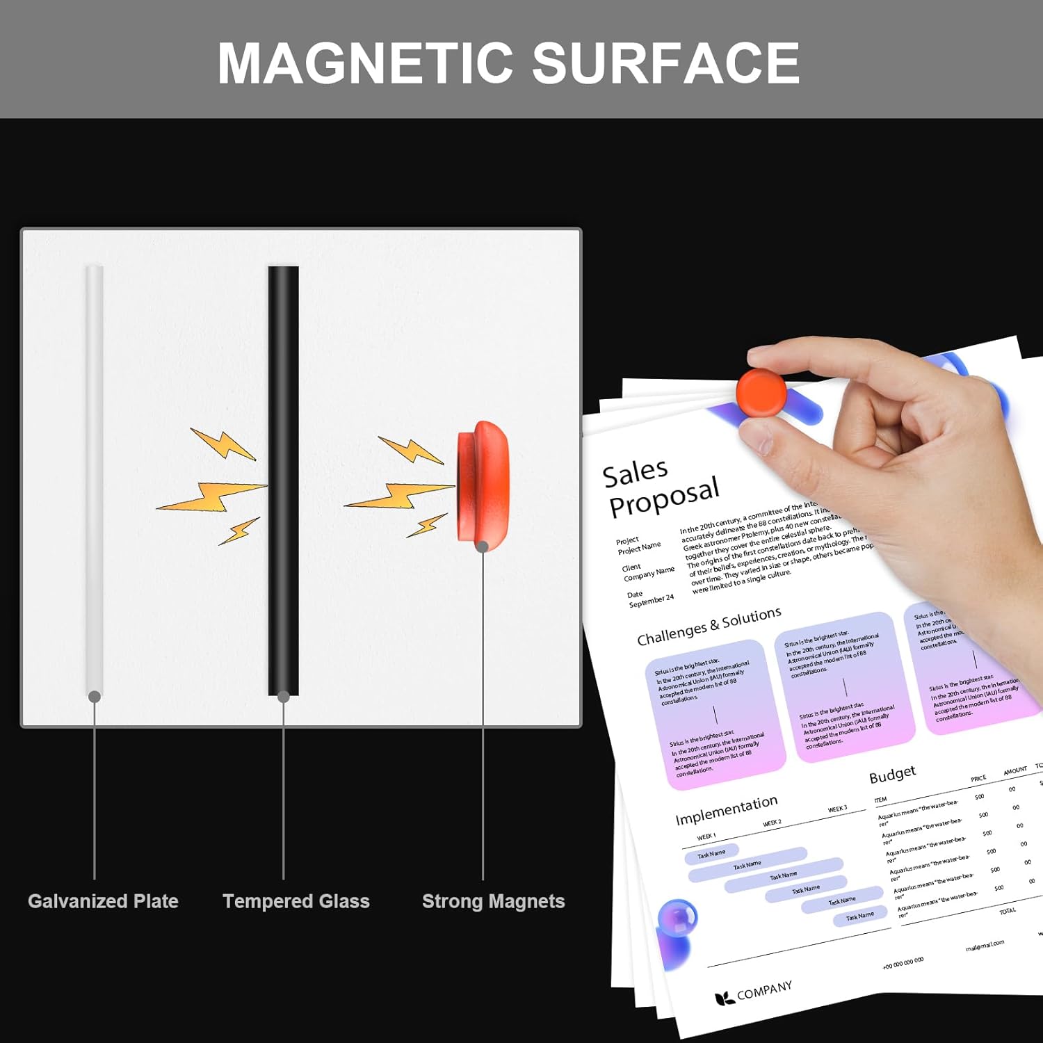 - **No Stains & Ghosting**: Made from high-quality tempered glass, it is resistant to scratches and stains, ensuring it looks new for years to come. Experience unparalleled smoothness when writing or erasing, leaving the board spotless after every use.