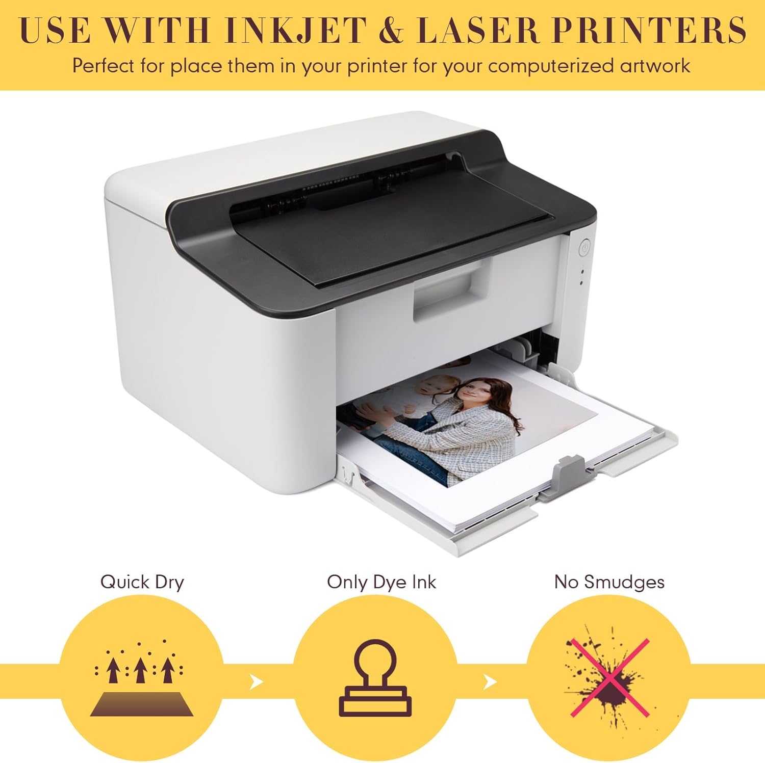 - Only Suitable for Ink Jet Printers: our 8.5 x 11 inches photo paper have glossy and thick double sides, only fit for ink jet printers; You can use these papers to print your beautiful photos, artworks, office flyers, office documents and more