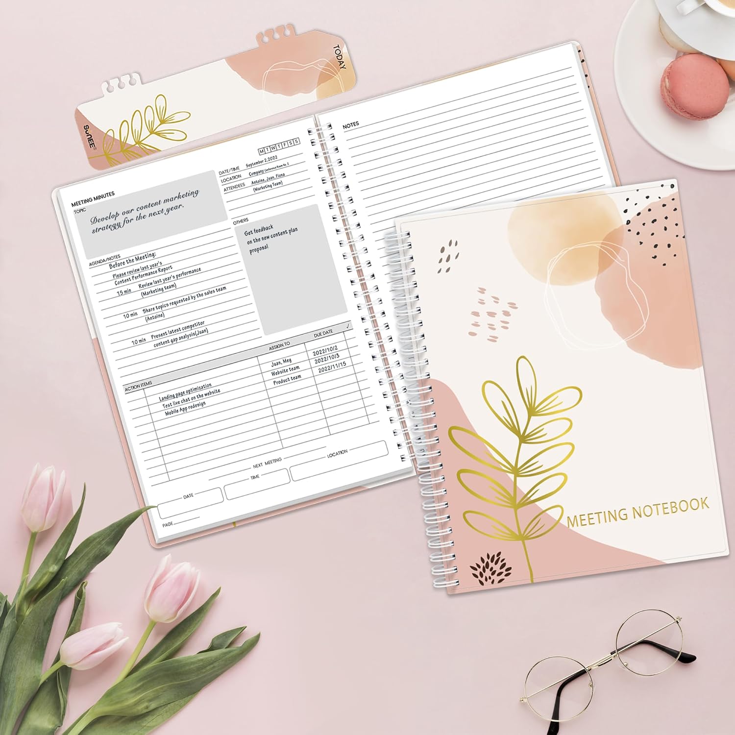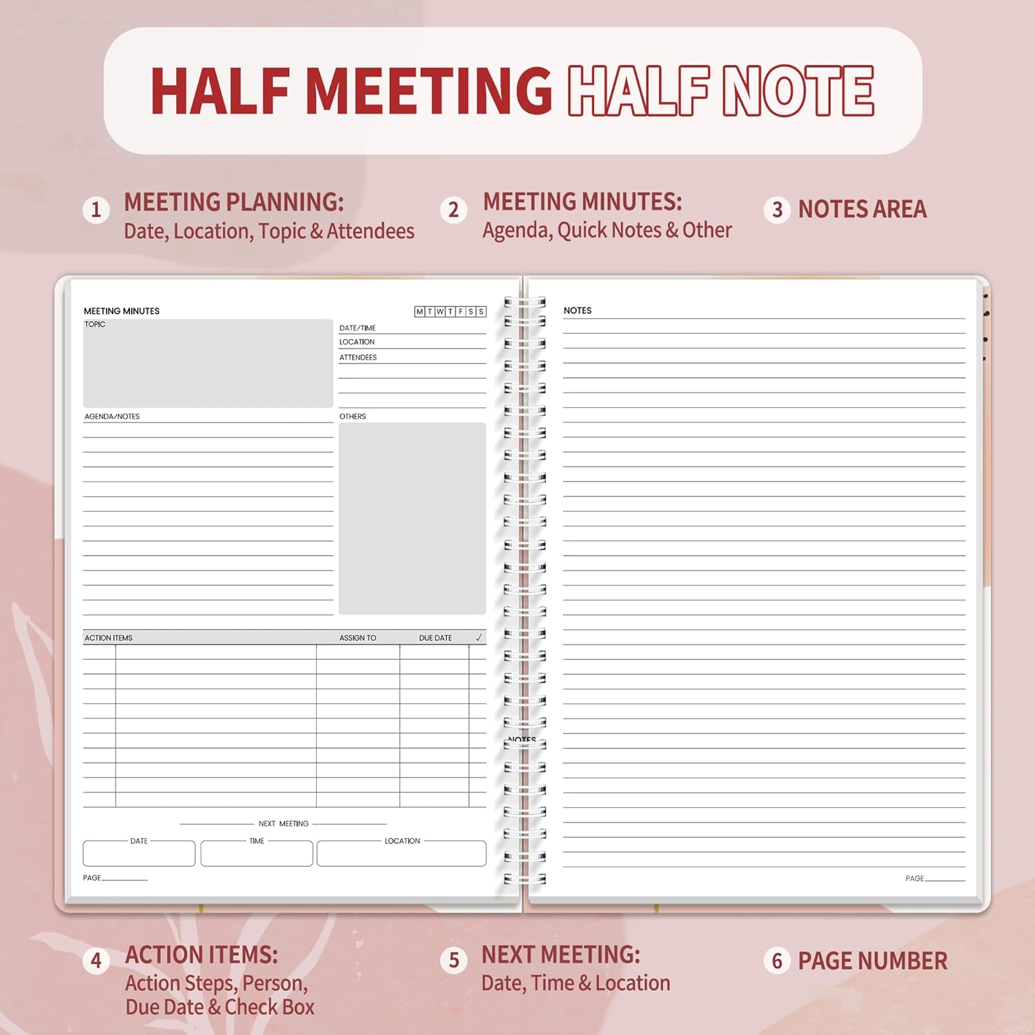 SUNEE Half Meeting Half Note - 7.5"x10" Professional Notebooks for Work - 160 Pages, B5 Size Project Planner, Spiral Meeting Agenda/Minutes Organizer for Women Men, Note Taking, Office & Business