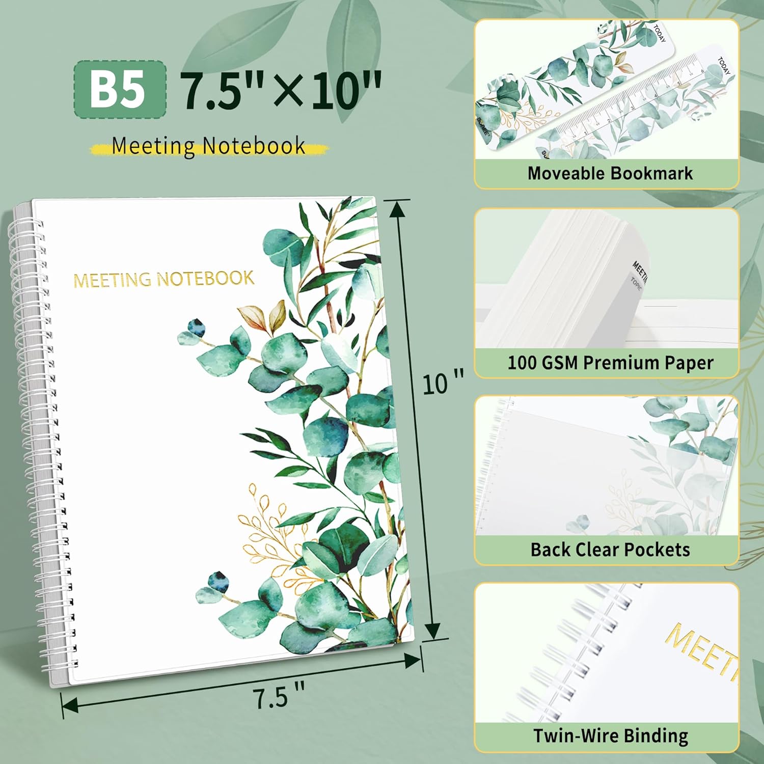 SUNEE Half Meeting Half Note - 7.5"x10" Professional Notebooks for Work - 160 Pages, B5 Size Project Planner, Spiral Meeting Agenda/Minutes Organizer for Women Men, Note Taking, Office & Business