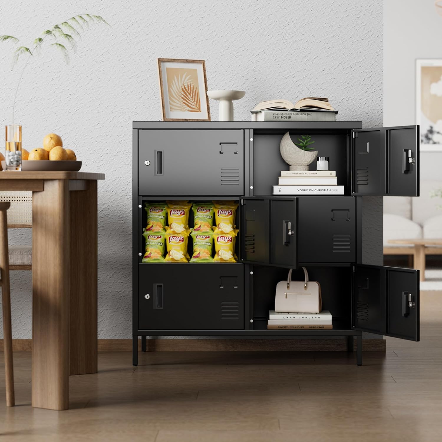 - 【Secure Steel Locker】 Metal storage locker have 6 doors, every door is equiped with black handle lock, Each compartment is equipped with an individual lock and key for enhanced privacy and security.