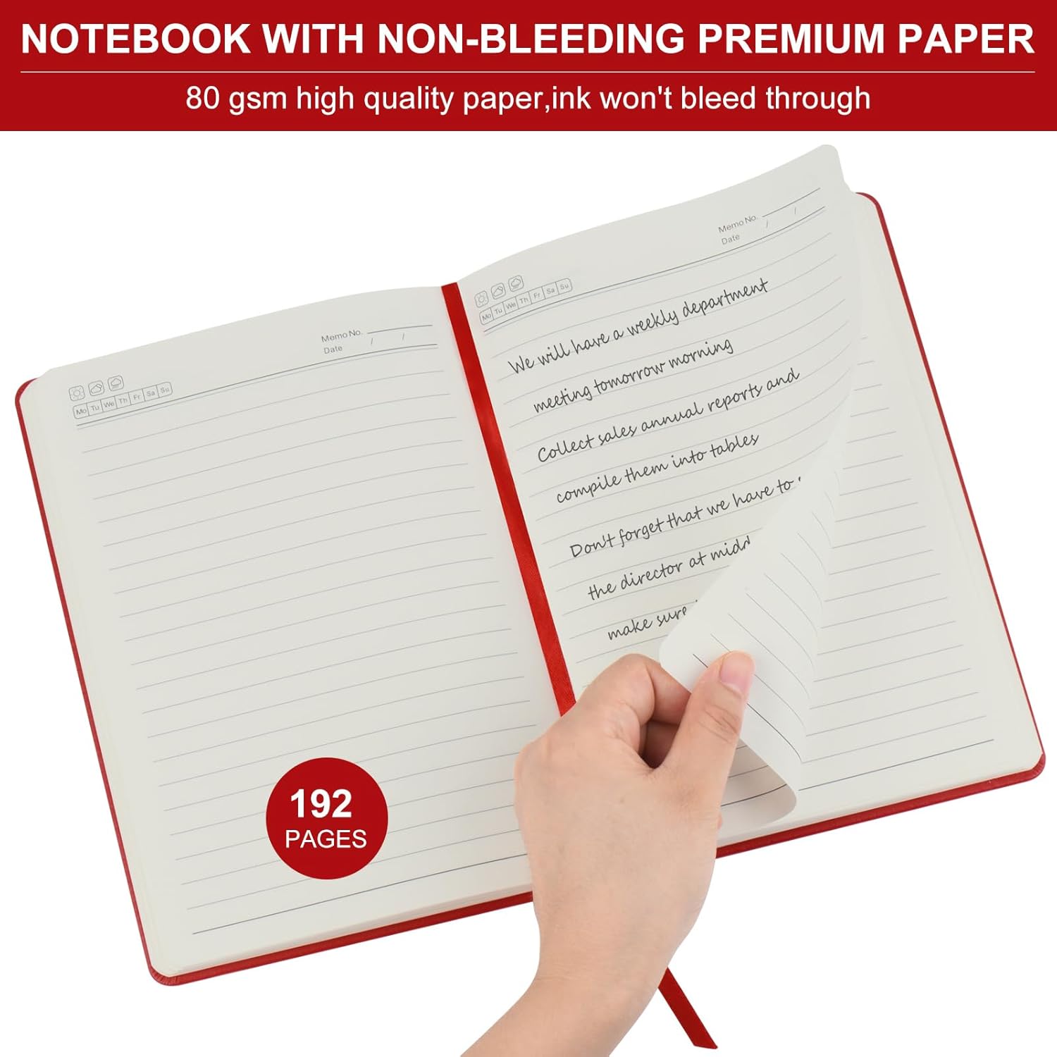 - Lined Journal Notebooks: 8 vibrant colors hardcover notebook, 192 pages/96 sheets per notebook, adequate for work, meeting, studying. The paper of the leather notebook is thick enough that ink won't bleed through. These journal notebooks are the ideal notebook for work, school, meeting, travel and diary