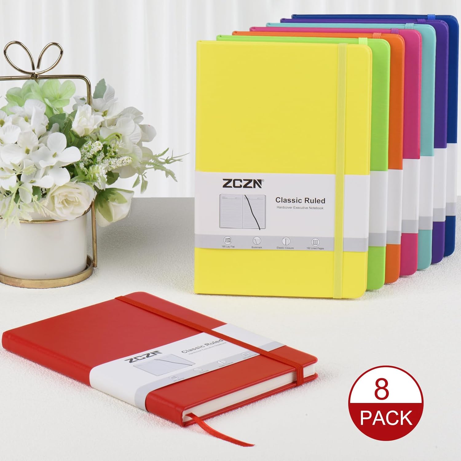 ZCZN 8 Pack Hardcover Journal Notebooks, 5.5"x8.3", Hardcover, 8 Colors, A5 Lined Journals for Notes-taking,Writing,Diary, Ruled Journaling Notebooks for Work School Travel Home