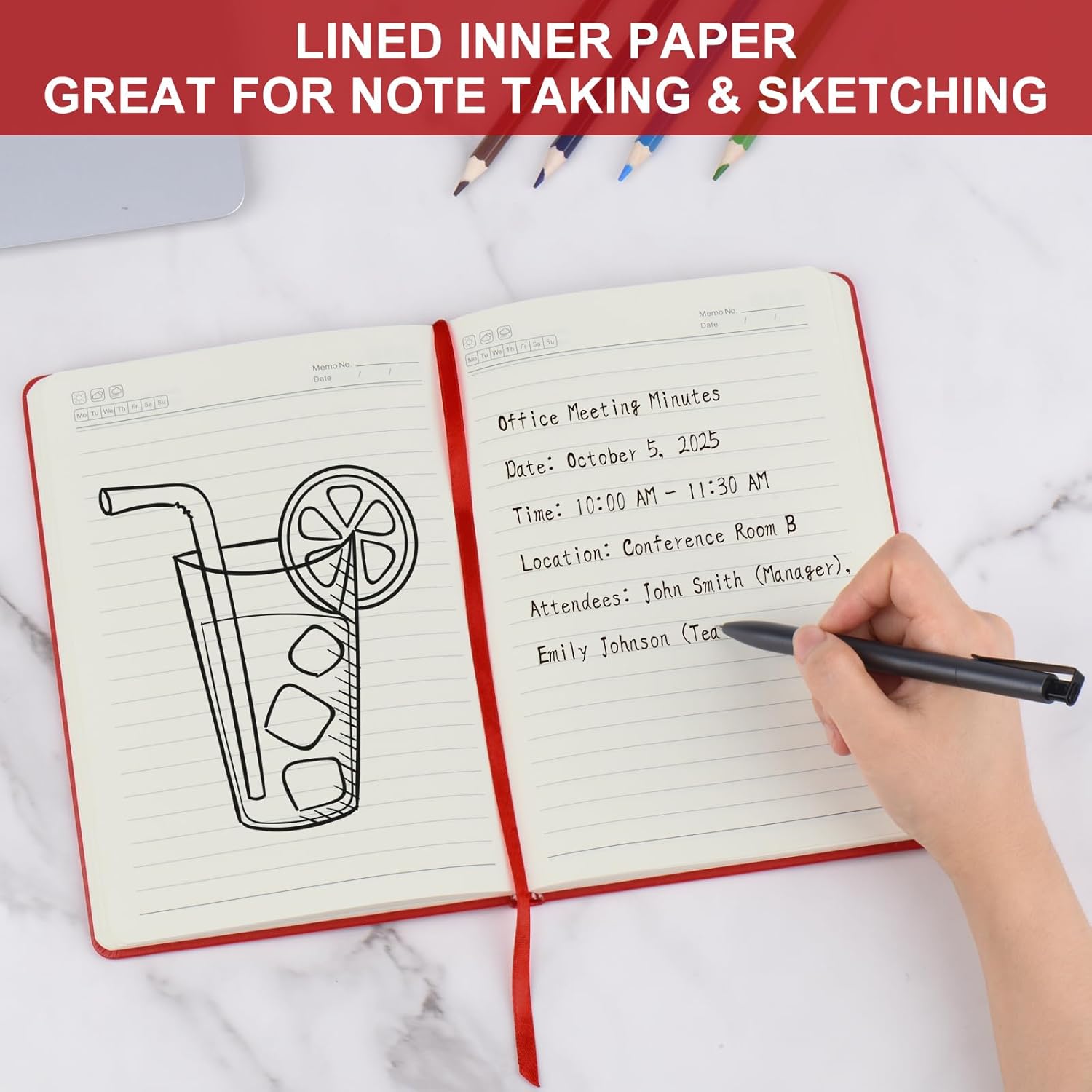 - Effective Design: Each notebook comes with an elastic clousure band, protecting the inner pages and personal privacy, also make the pages of hardcover executive notebooks well organized. One ribbon bookmark helps you locate the content. The lined inner paper make writing more neatly