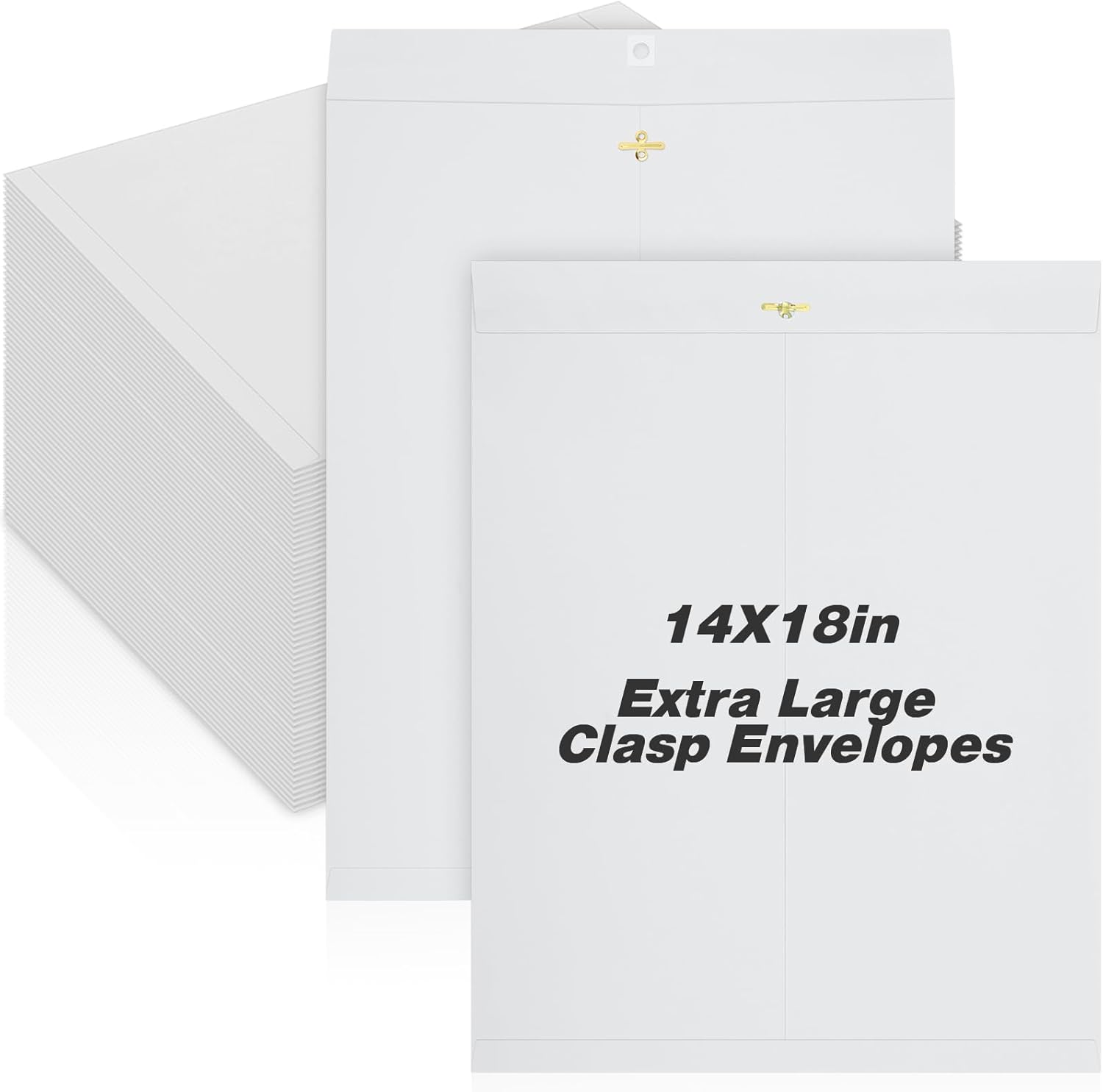 - For Office: the clasp design of our white kraft envelopes boasts the ability to open and close repeatedly without damaging its contents; So, whether you're posting large documents or simply keeping annual reports on your desk, our 14 x 18 envelopes are sure to come in handy