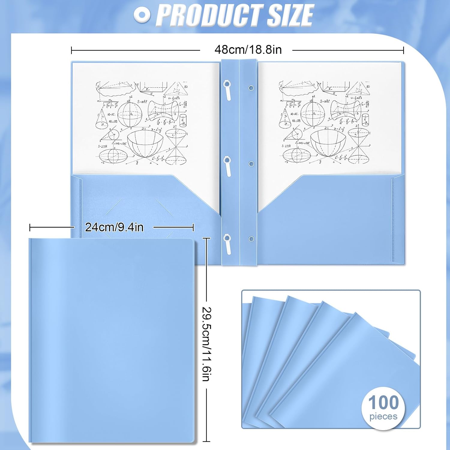 Lincia 100 Pcs Plastic Folders with Pockets and Prong Folders with Prongs 2 Pockets for Office, School for Students, Teachers, Office Workers (Haze Blue)