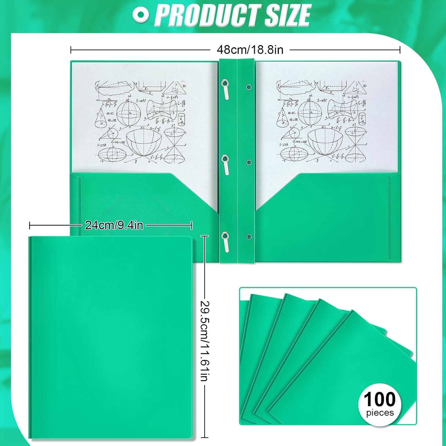 Lincia 100 Pcs Plastic Folders with Pockets and Prong Folders with Prongs 2 Pockets for Office, School for Students, Teachers, Office Workers(Green)