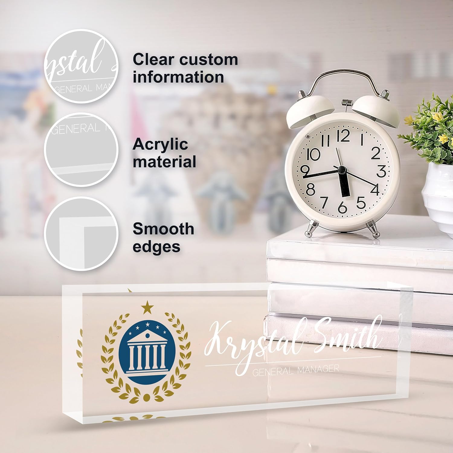 - 【Premium Acrylic Materials】:We use high-quality transparent and environmentally friendly acrylic blocks to make custom name plates, and use the most advanced HD printing technology and super strong adhesives to make the name plate content clear and never fall off. And because of its sturdy and durable characteristics, the acrylic name plates can become a permanent desk decoration.