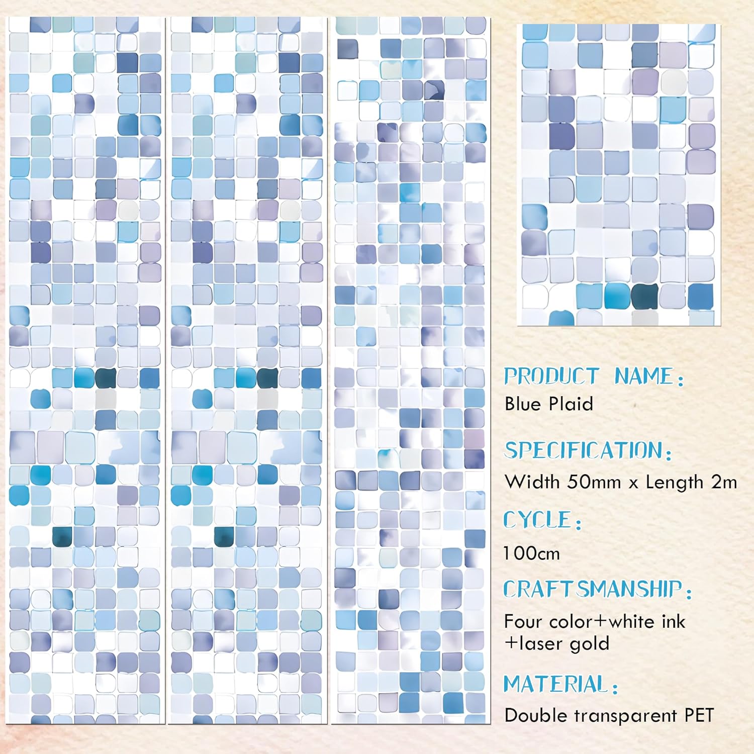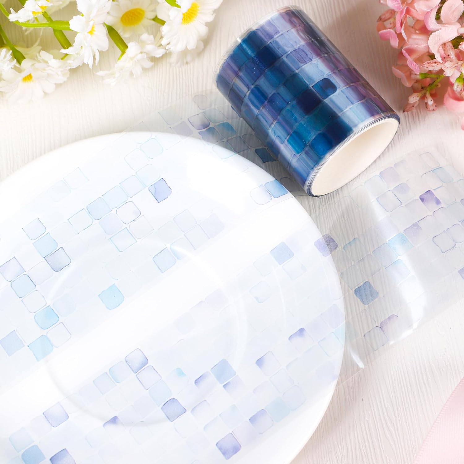 - Charming Mosaic Design: This scrapbooking PET tape features a soft, ocean-inspired mosaic pattern with shades of blue and lavender, adding an elegant touch to your creative projects