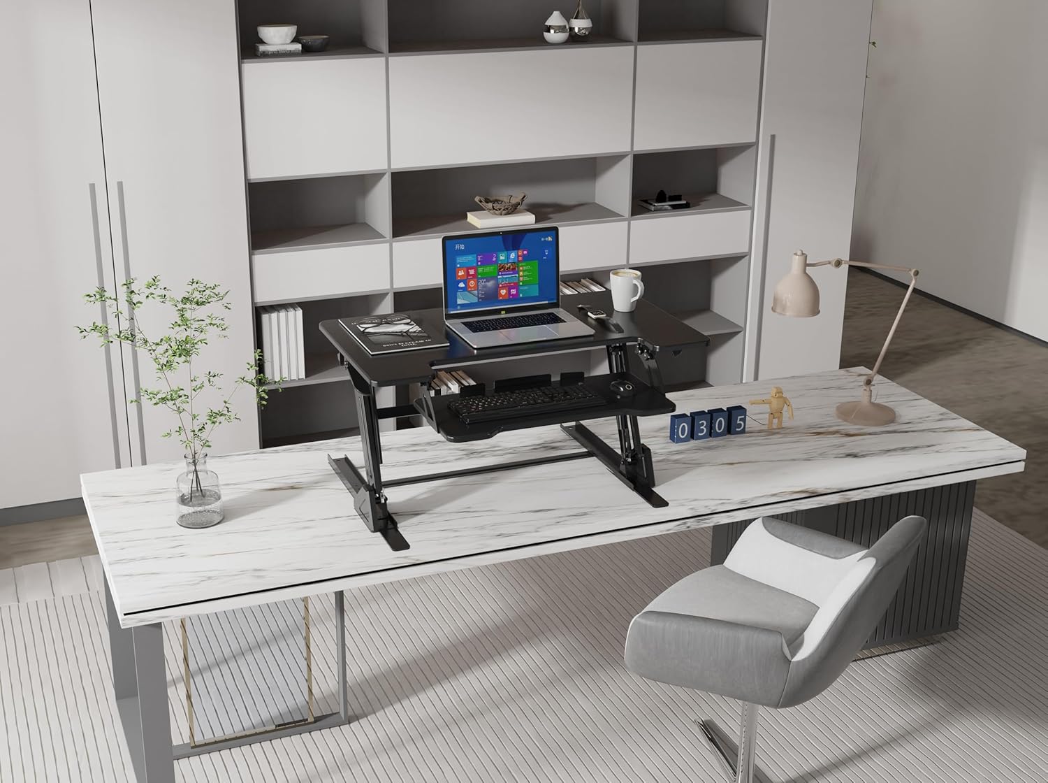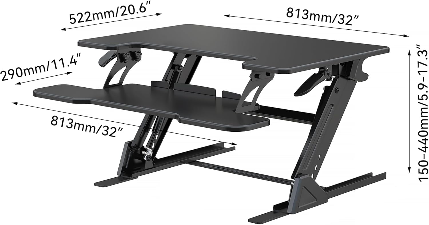Standing Desk Converter 32 x 24 Inches - Height Adjustable Sit to Stand Riser with Keyboard Tray, Ergonomic Workstation for Home Office, Black