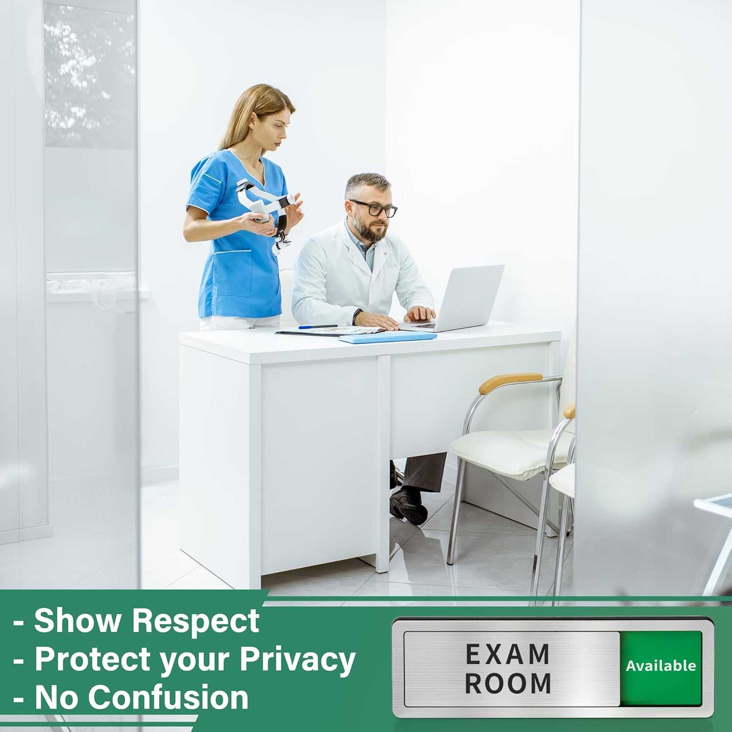 Exam Room Sign, Exam Room Numbers, In Use/Available Slider Door Signs for Therapists, School, Medical Office, Hospital-Easy Installation