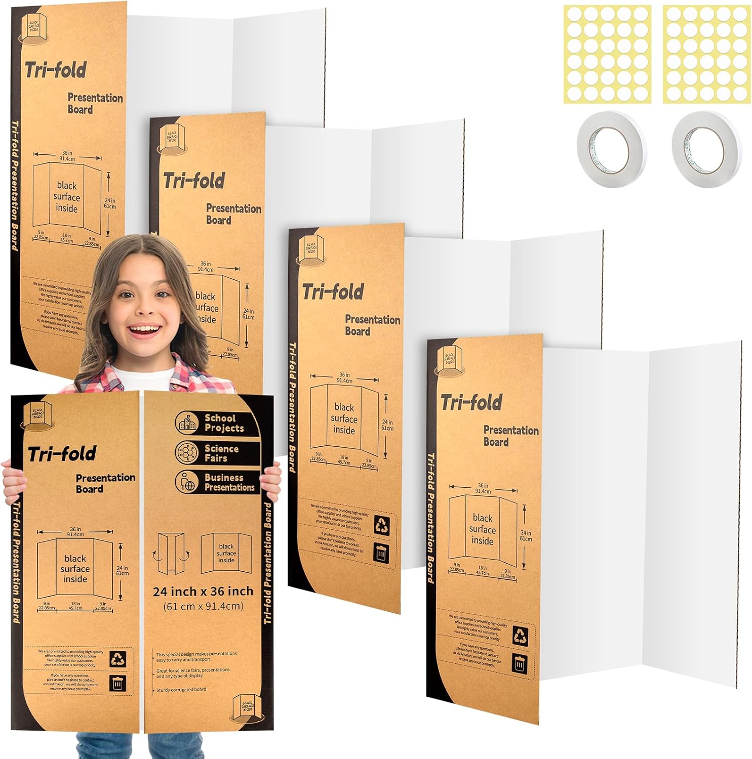 - Package included: Trifold Poster Board 4 Pack, 2 rolls of double sided adhesive tapes and adhesive dots, these all for Art, Display, Projects use.