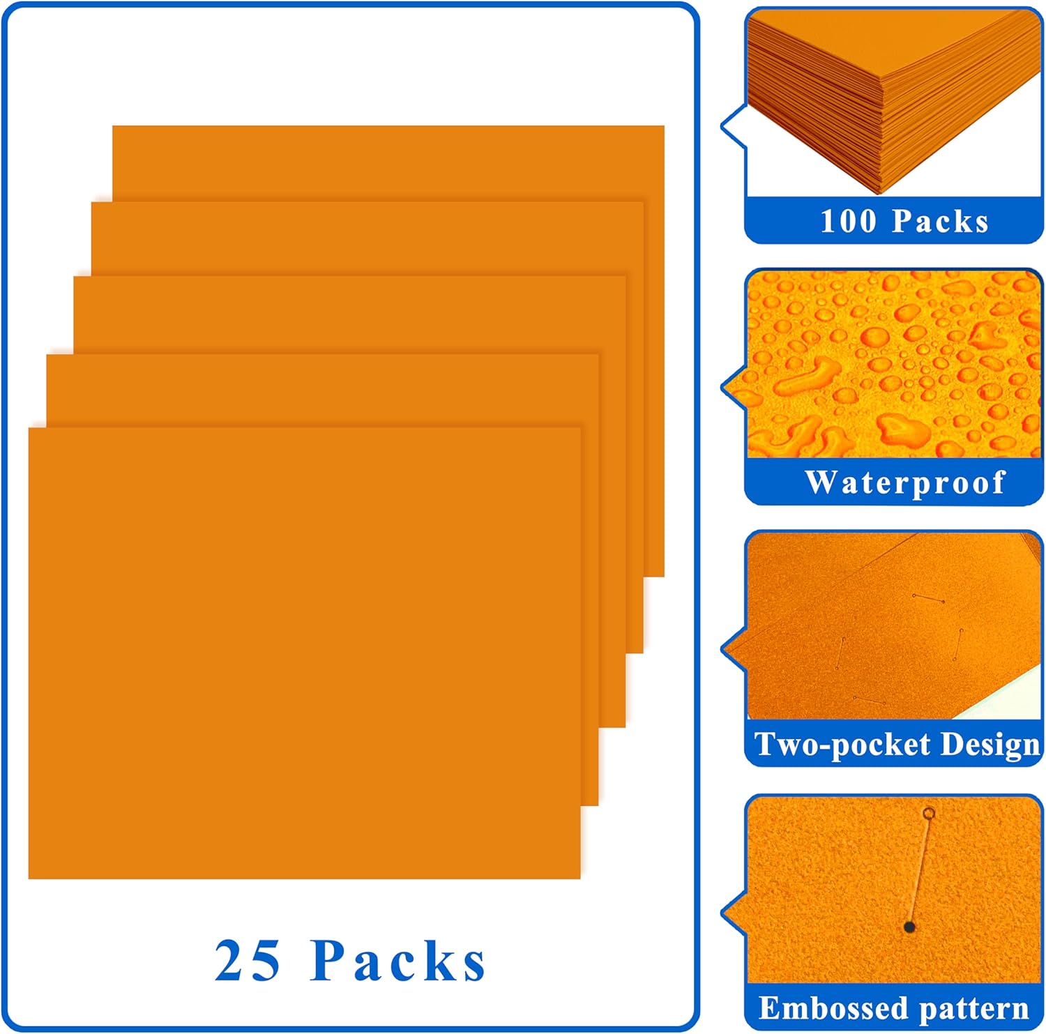 - PACKAGE INCLUDES: 25 packs orange file folders with 2 pocket folders and 2 business card slot, 100 plus Sheet Capacity, enough use for you, perfect for school, paperwork, office, business.
