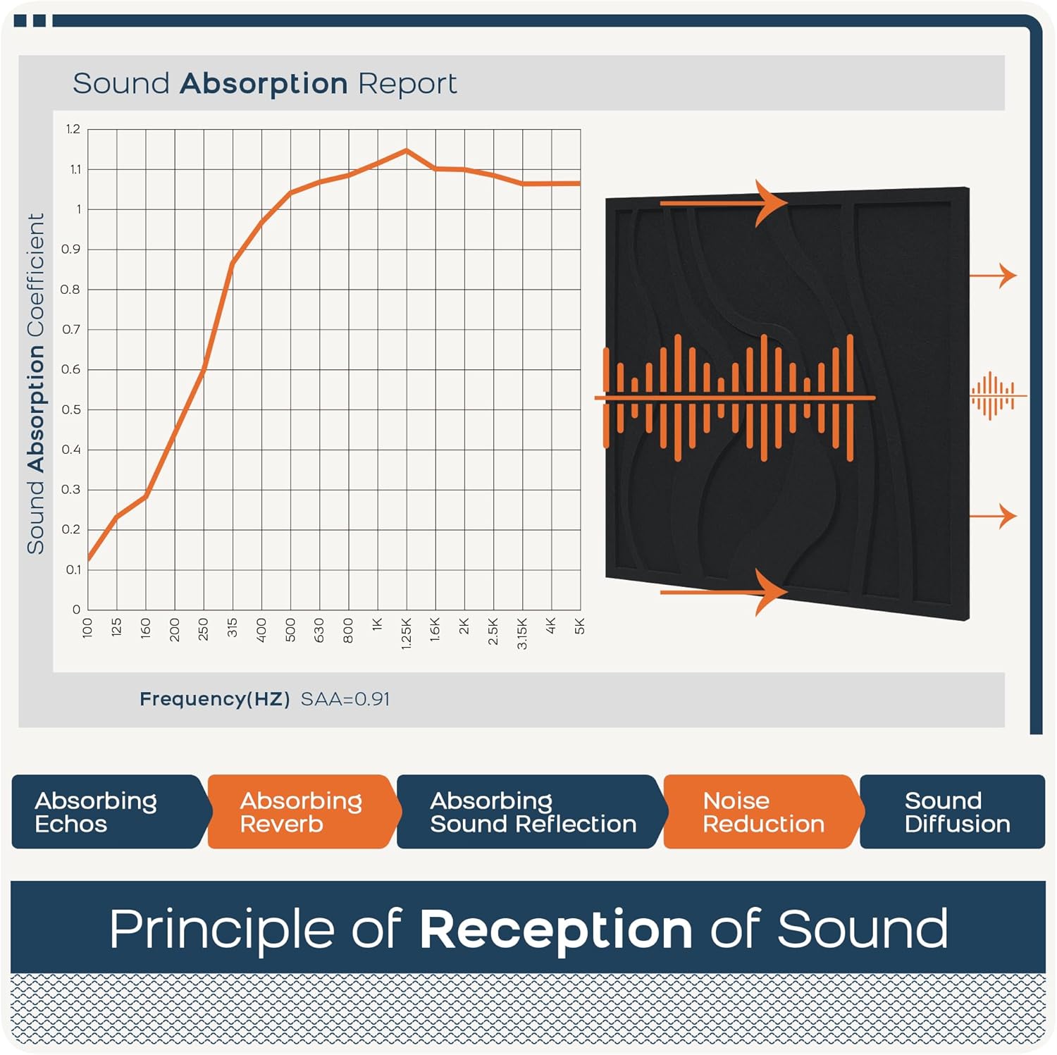 - đťăSound Absorbingă Our acoustic panels which can easily and effectively reduce reverberation diffusion and echo, absorbing noise for walls. Effectively improve your sound environment and quality.Absorption Frequency: 150-20000HZ.