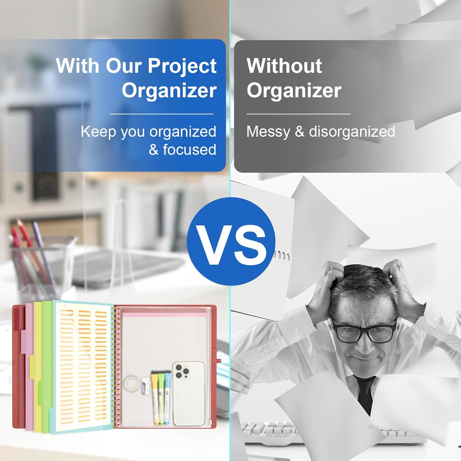 - 【Secure Storage】The portfolio organizer has a clear pouch with a zipper that provides a secure place to store documents, notes, or other items when you're on the go. The clipboard comes with 5 plastic folders that have 10 pockets, fitting all standard US letter-size sheets (11" x 8.5"). It is a great way to keep your papers organized and easily accessible.