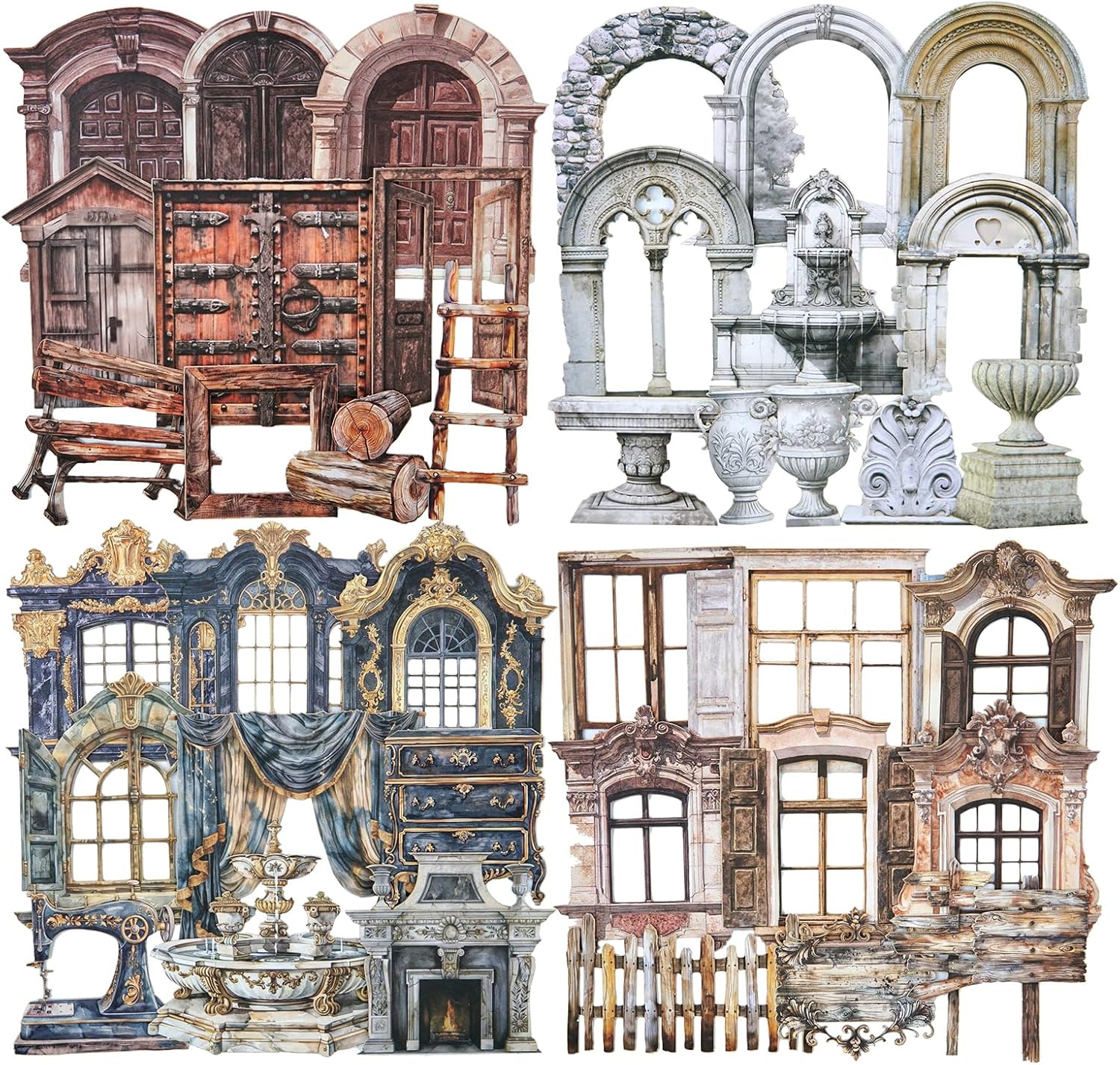 - Pre-cut Hollow Designs: Each sticker is pre-cut with detailed cutout shapes that resemble ornate doors, arched windows, and antique furnishings, adding visual interest and elegance to your paper crafts