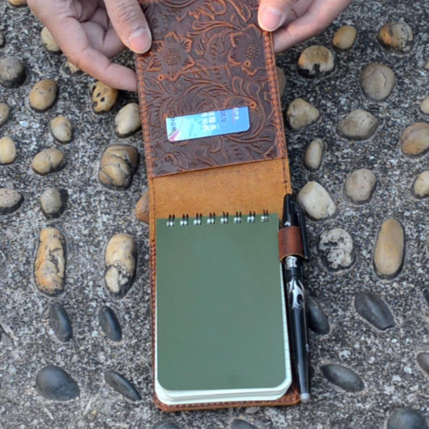 JJNUSA Leather Cover for Rite in the Rain Spiral Notebooks 3" x 5" Distressed Genuine Leather Memo Notebook Cover for Pocket Notebook 3 x 5 Flower Brown