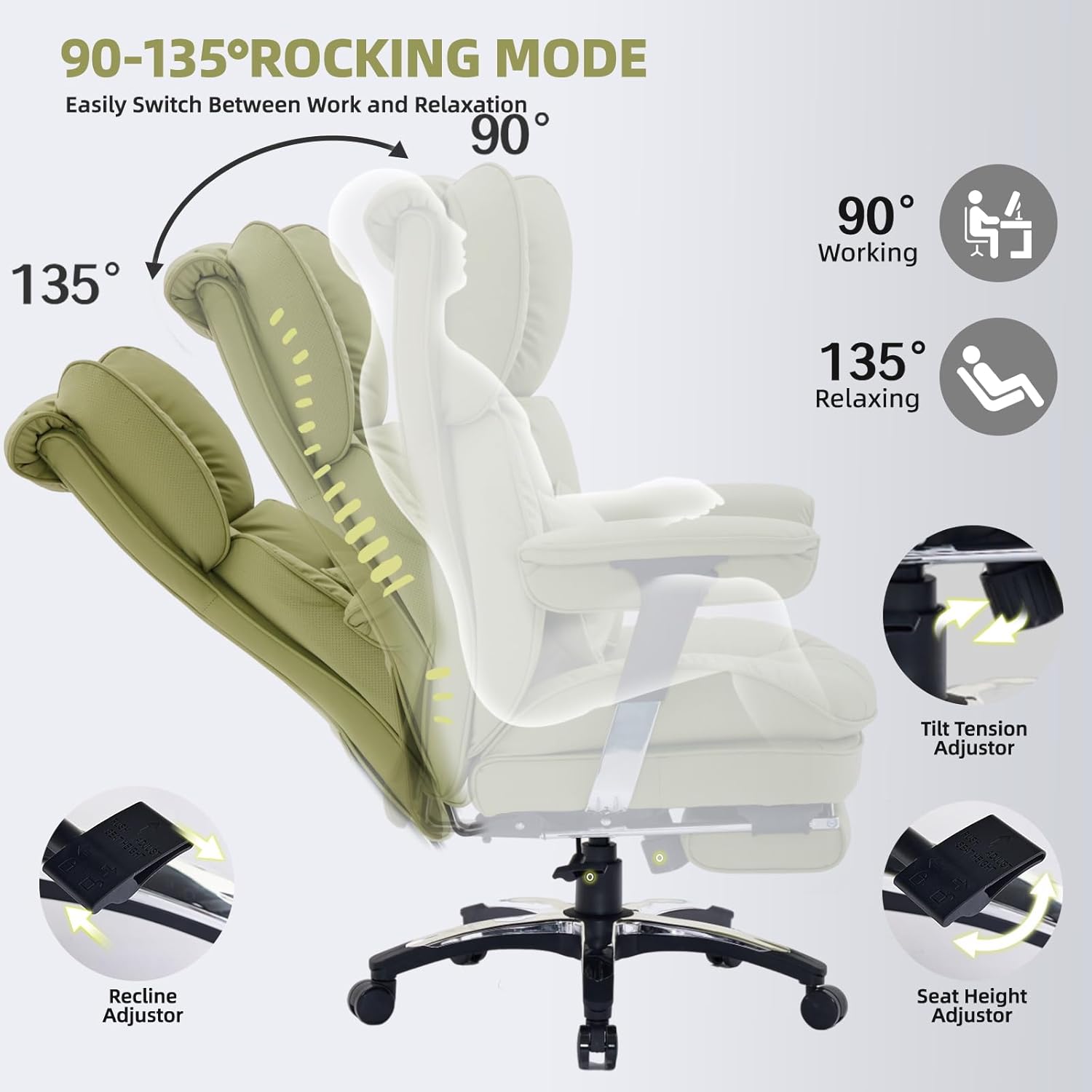 Efomao Big and Tall Office Chair with Footrest – High Back Computer Chair with Adjustable Armrests,Executive Office Chair with Wide Seat, Modern Desk Chair for Home Office, Gaming, or Study, Green