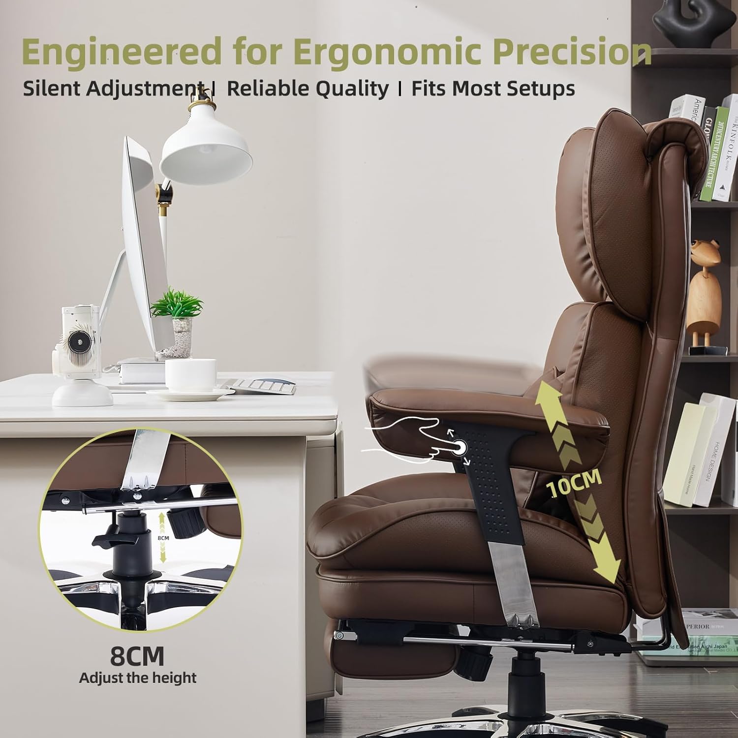 Efomao Big and Tall Office Chair with Footrest – High Back Computer Chair with Adjustable Armrests,Executive Office Chair with Wide Seat, Modern Desk Chair for Home Office, Gaming, or Study, Brown