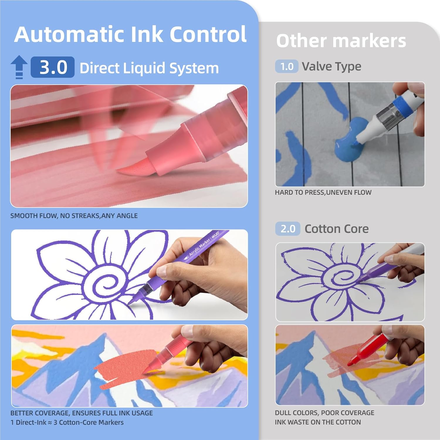 - 【Direct Liquid Ink Technology】: Unique automatic ink-control system ensures smooth, consistent flow without pressing; No clogging or drying issues; Requires only gentle shaking for immediate use on multiple surfaces