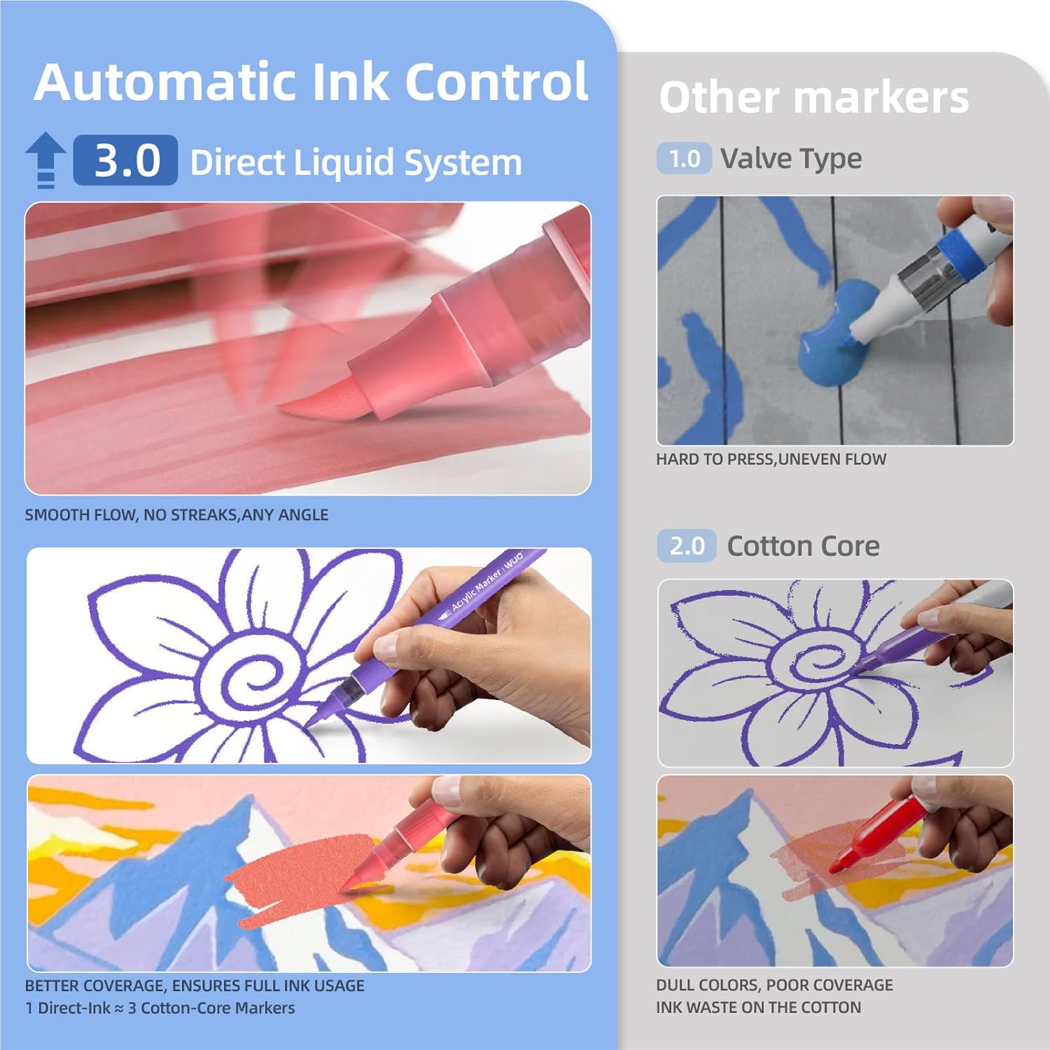 - 【60 Vibrant Colors & Complete Kit】: Features 60 highly pigmented acrylic paint markers; Includes Portable 5-layer transparent acrylic box; 1x Plastic Envelope; 1x Wood Slice for Painting; 1x Magic Foam Texture Painting Kit; 2x Color Charts; 3x Pattern Paper; 1x Foam Texture Activation Tutorial and Color Blending Tutorial