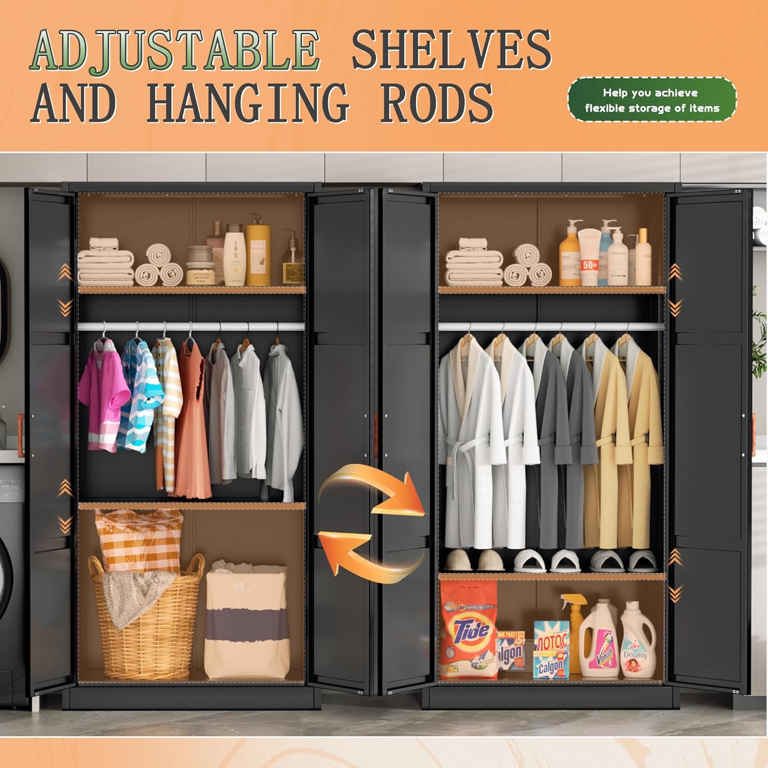 - Safe & Stable Wardrobe: Greenvelly Metal Armoire Cabinet Doors are equipped with 2 powerful magnetic closures to ensure that the doors close tightly and keep your belongings safe from dust. In addition, its well-designed anti-tipping system enables the steel wardrobe to be securely fixed to the wall, effectively preventing the possibility of accidental tipping.Metal storage cabinet can be used with confidence, especially for families with children.