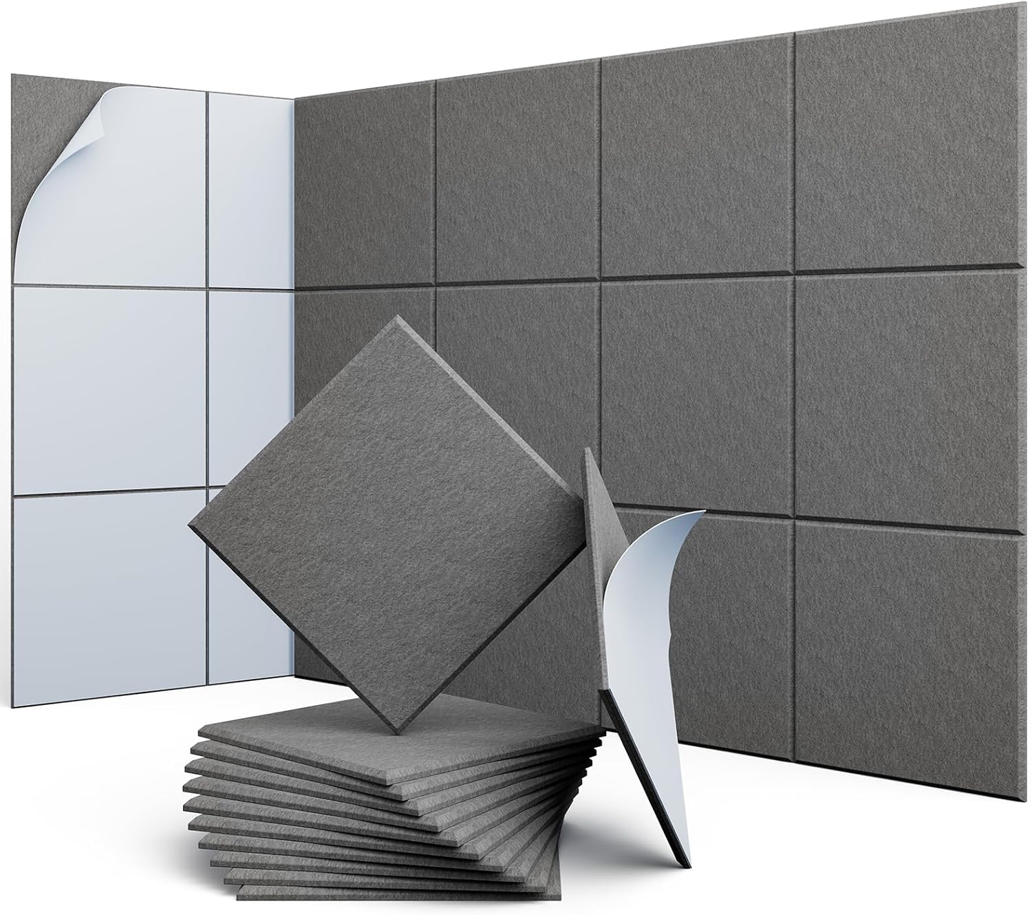 12 Pack 12" X 12" X 0.4" Acoustic Panels for Wall Sound Absorbing, Square Self-Adhesive Sound Panels, High Density Suitable for Multiple Scenarios(MoonLight Gray)
