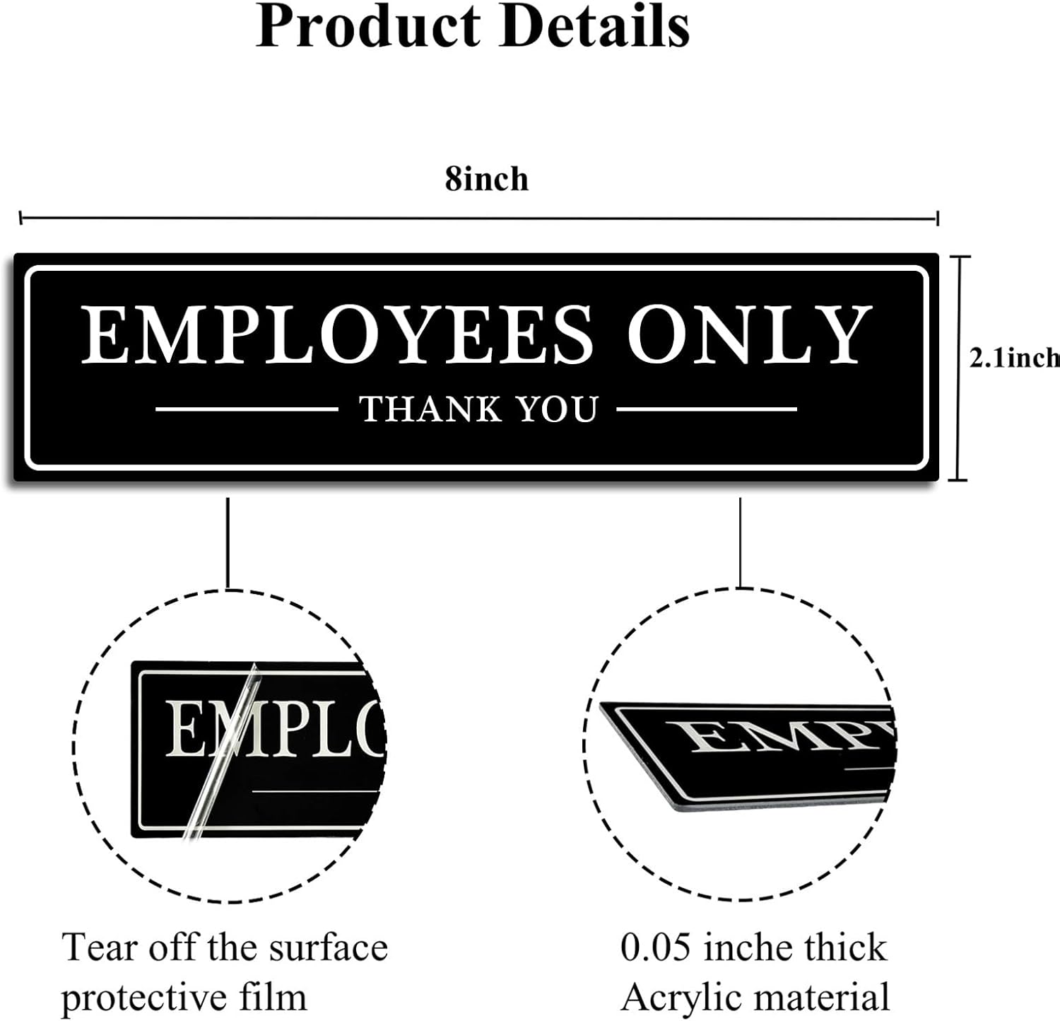 - WHAT YOU GET- You will get 1 acrylic employees only Signs and 2 pieces double-sided tapes.