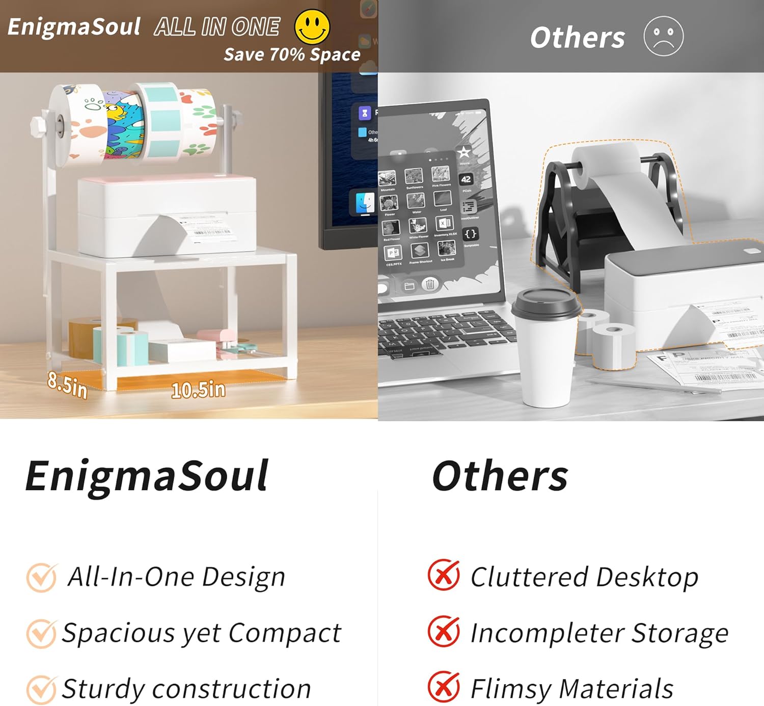 - 【Smart Space Maximizer】 Measuring just 9.45" × 6.29" × 6.65", this smart 3-tier design holds your thermal printer and labels. This innovative design optimizes desktop space, freeing up to 70% of your workspace, allowing you to stay productive and organized.