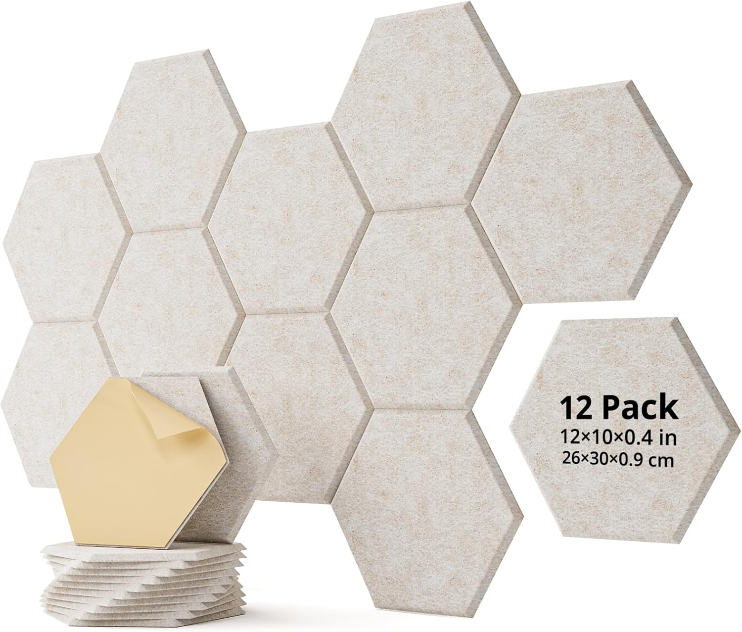 12 Pack Acoustic Panels Sound Absorbing, Self Adhesive Sound Proof Panels, Hexagon High Density Sound Deadening Panels, 12"X10"X0.4" Wall Decor for Bedroom,Home,Studio,Office(Beige)