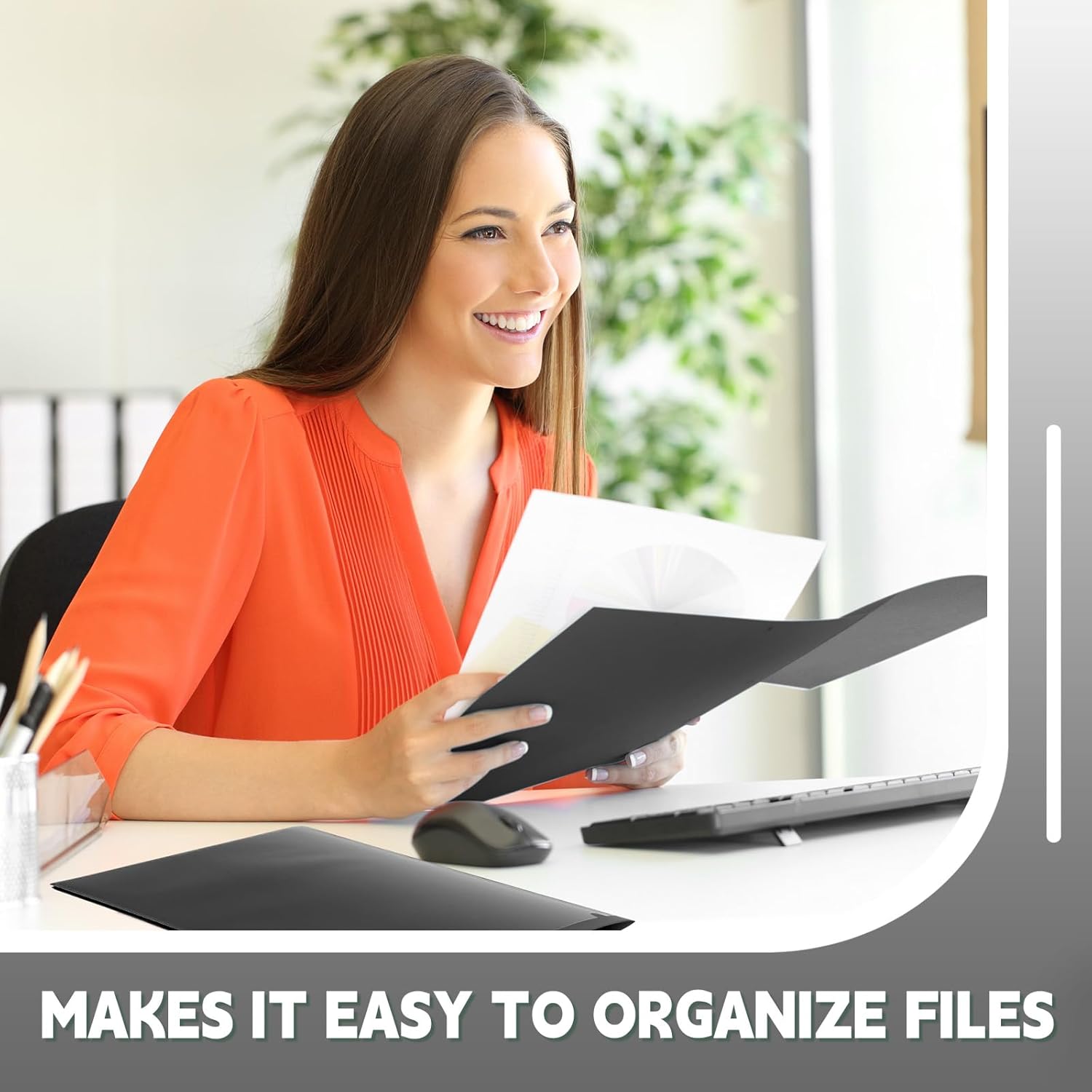- Flexible 2 Pocket Design: each letter size black folders is designed with 2 pockets; This design allows you to easily insert papers without stapling, which not only reduces the complicated steps of use, but also maximizes the loading capacity, which is very practical