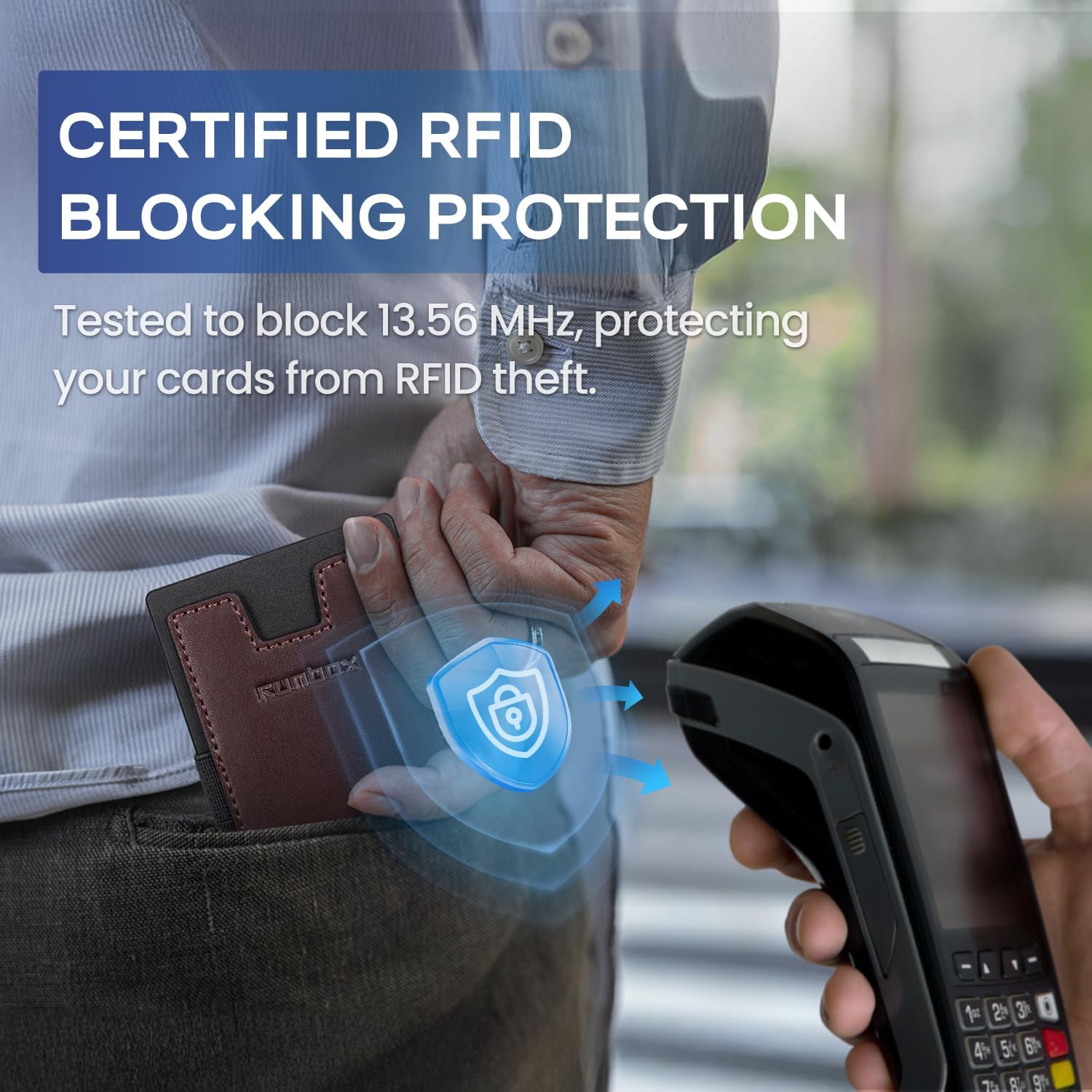 - Military-Grade RFID/NFC Protection: Built with solid aluminum shielding, this smart wallet blocks 13.56MHz signals to prevent digital theft. Safeguard credit cards and IDs from skimming devices – your data stays secure