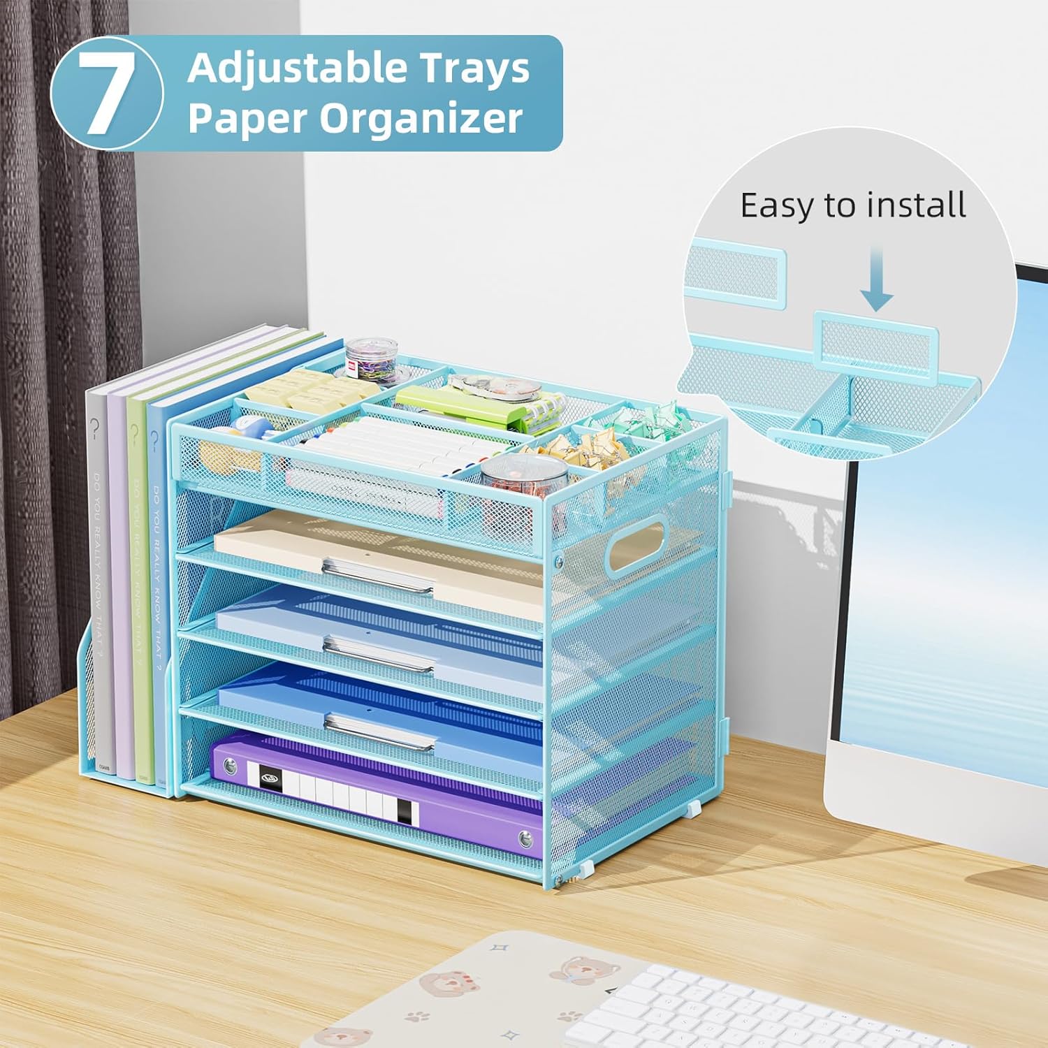 - ăEasy to AssembleăAfter watching the file folder holder installation manual, you can easily assemble the desk organizer in a few minutes. Fits perfectly on desks, cabinets or shelves while maximising storage space.