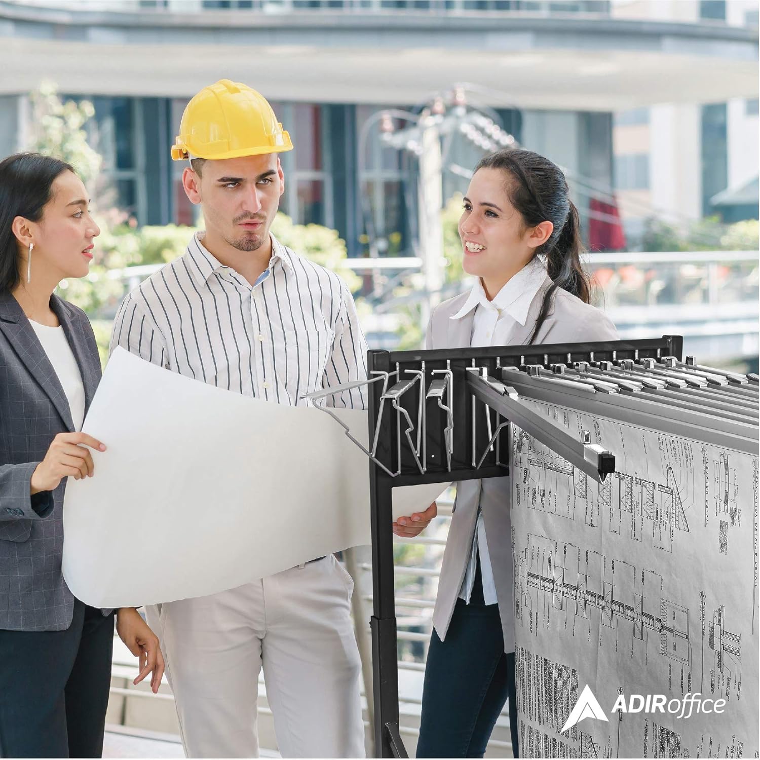 • Mobile and Adjustable Rack: The blueprint rack rolls smoothly on four casters, with front brakes for stability. Height and depth adjustments accommodate different file sizes, making it versatile for various office or job site needs.