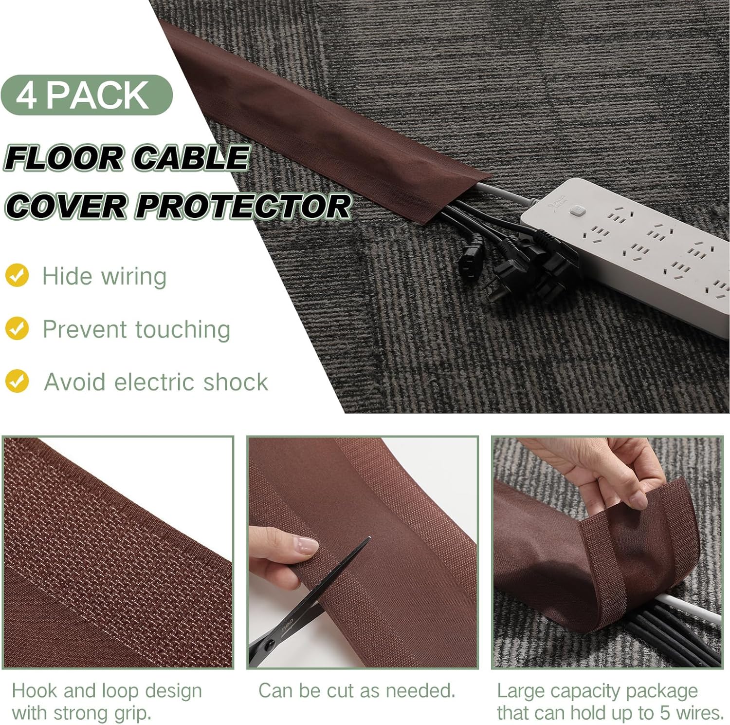 WILLBOND Grip Floor Cable Cover Cords Protector Management Only for Commercial Office Carpet(19.69 ft,Brown)