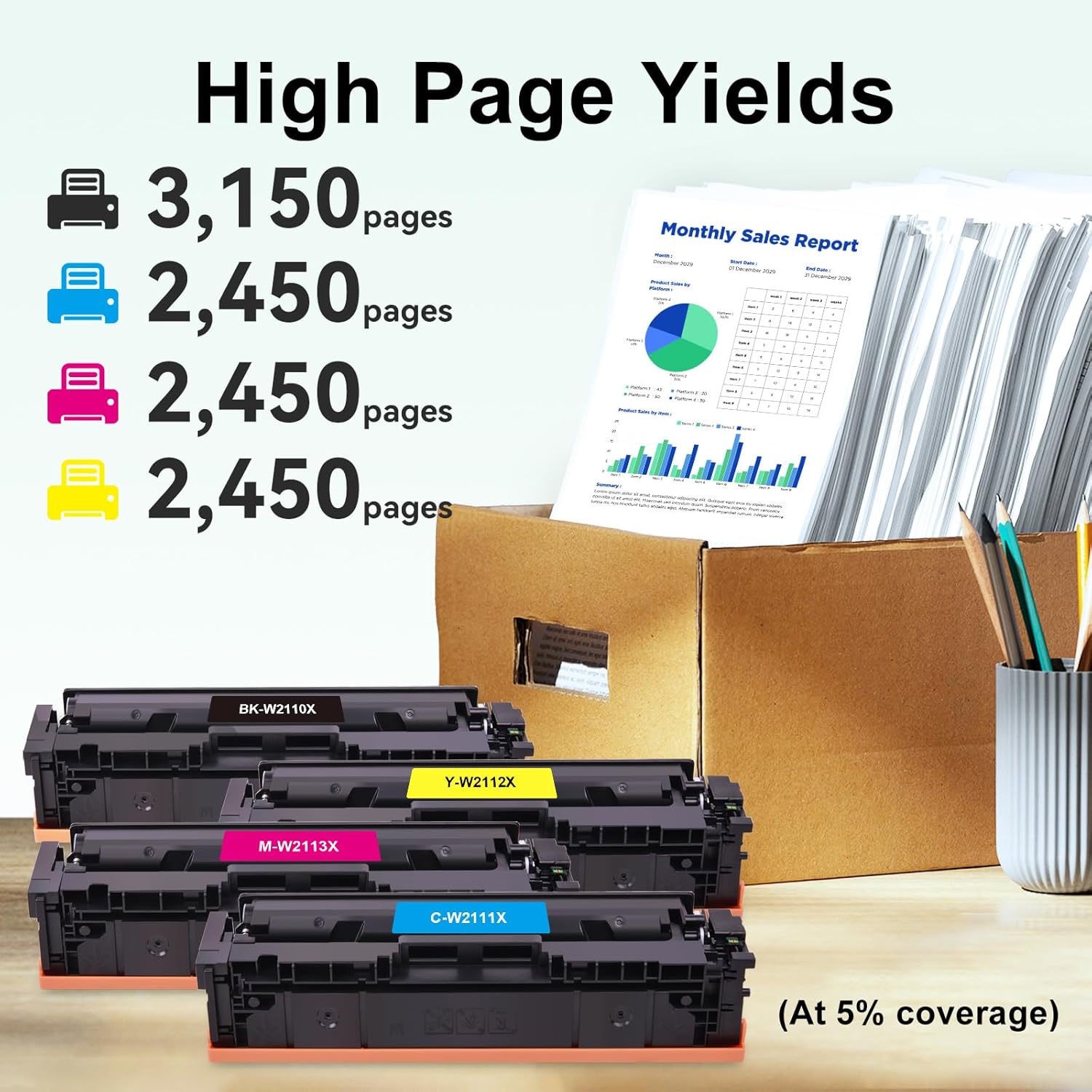 - High Page Yields: SAILNER high yield 206x toner cartridges delivers up to 3150 pages per black and 2450 pages per color. It's your dependable partner for consistent, high-quality printing