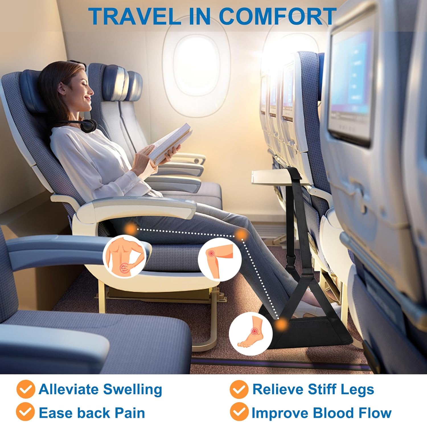- Multiple usage methods and wide application : This travel footstool accessory can be used not only on airplanes, trains, and long-distance buses, but also in offices, homes, or hotels. As long as you want to relax your feet and legs, whether on the road or in the office, it can relieve the pressure on our legs.