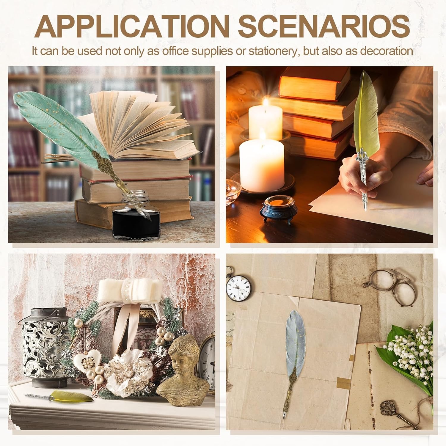 - This feather pen is widely used in weddings, parties, birthdays, invitations, anniversaries, offices, homes, etc. It can be used as an office supply or stationery for you to write, sign, and practice calligraphy to increase the fun of life.