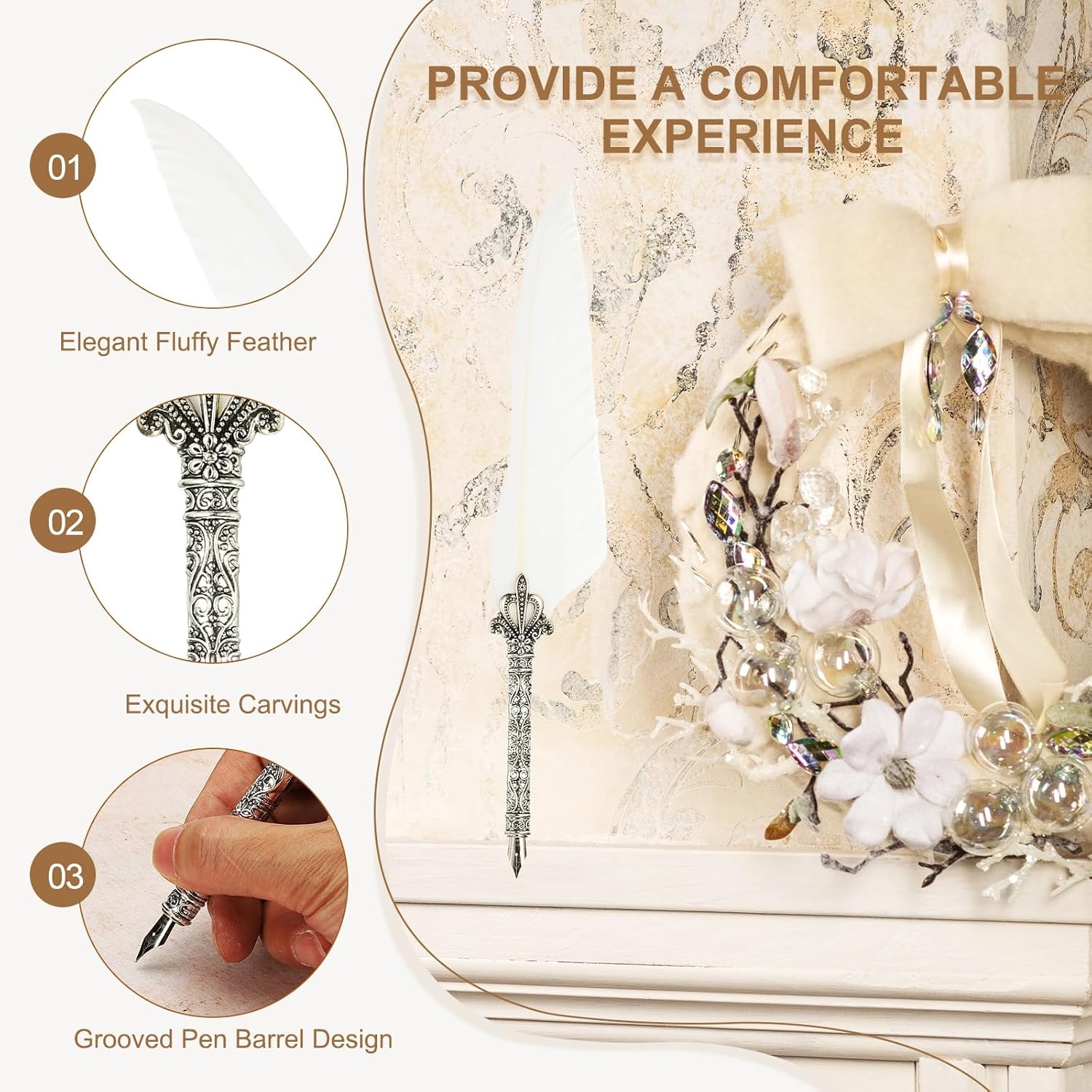 - This feather pen is widely used in weddings, parties, birthdays, invitations, anniversaries, offices, homes, etc. It can be used as an office supply or stationery for you to write, sign, and practice calligraphy to increase the fun of life.