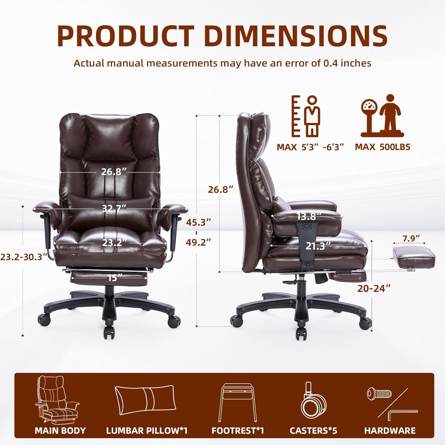 - πͺππππππππππ: Big and tall office chair features scratch-resistant PU leather. Task chair is easy to maintain. Big high back office chair filled with double-layer polyester foam and sponge seat and backrest provide unmatched comfort for all-day sitting.