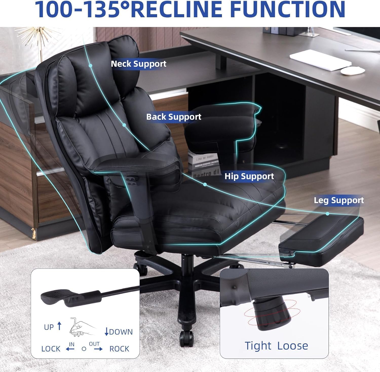 - πΊπππππ: Leather office chair built on a foundation of durability. Heavy-duty metal base and SGS-certified 4-Grade lift cylinder ensure not only steadfast executive chair with leg rest stability but also peace of mind with big and tall office chair every adjustment.