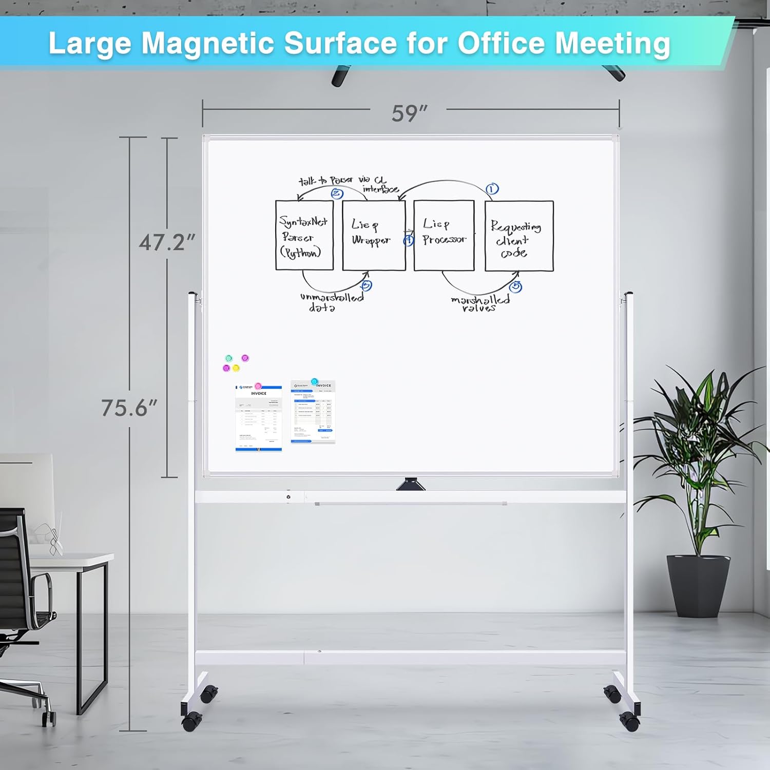 maxtek Rolling Whiteboard 60x48, Large Double-Sided White Board Dry Erase on Wheels, Giant Magnetic White Board Standing for Office, School, Home Office, Homeschool (Sliver)
