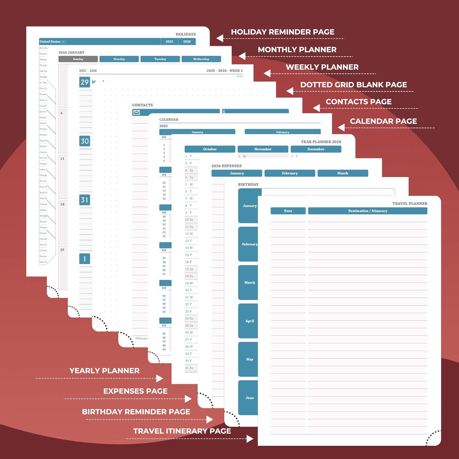 - Compatible 2026 Planner: Adaptable across lifestyles and roles. Professionals track workflows, conference logistics; students plan academic schedules, evaluations, and after-school; households manage vacation arrange & family activity
