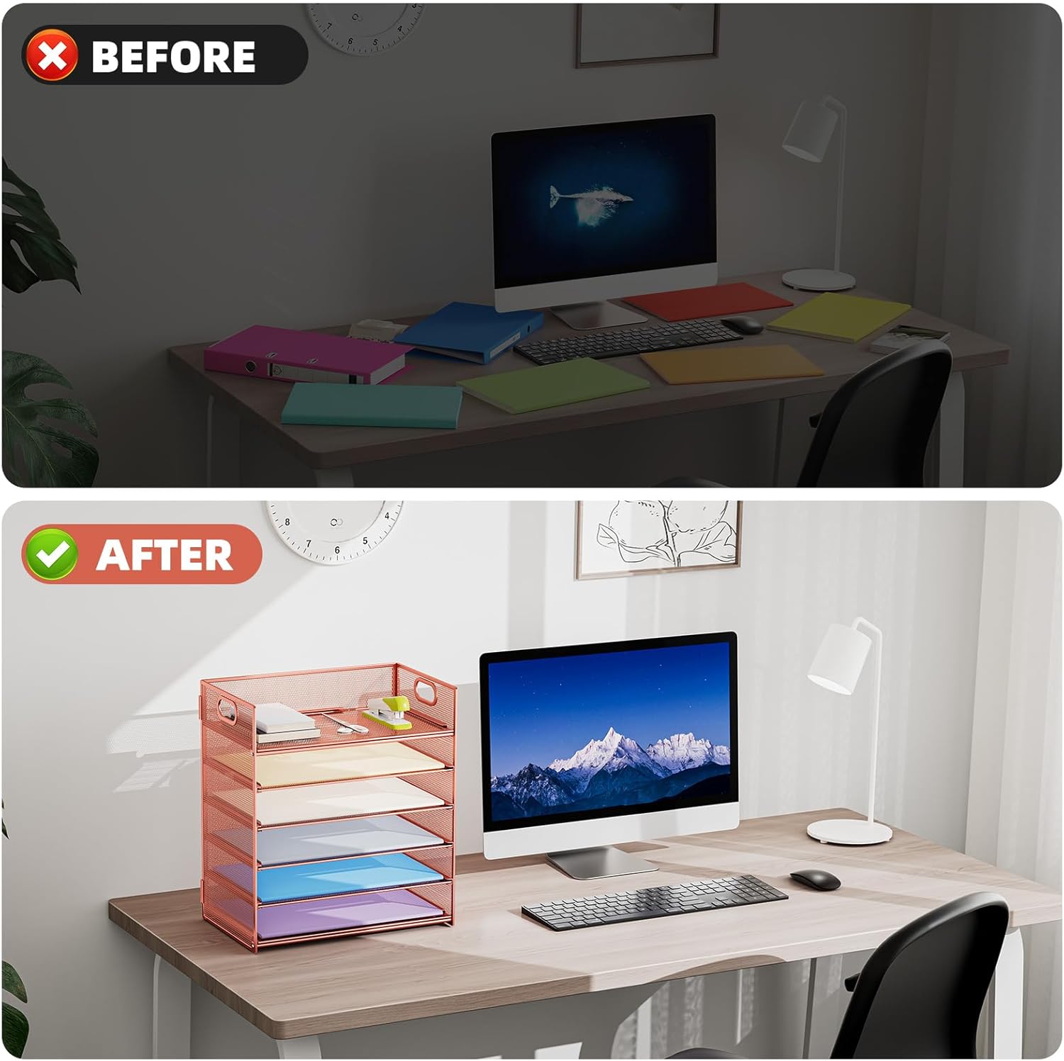 - 【HIGH QUALITY】The mesh desk file organizer is made of lightweight durable metal mesh and reinforced with a solid steel frame that makes it have long-lasting strength and reliable performance