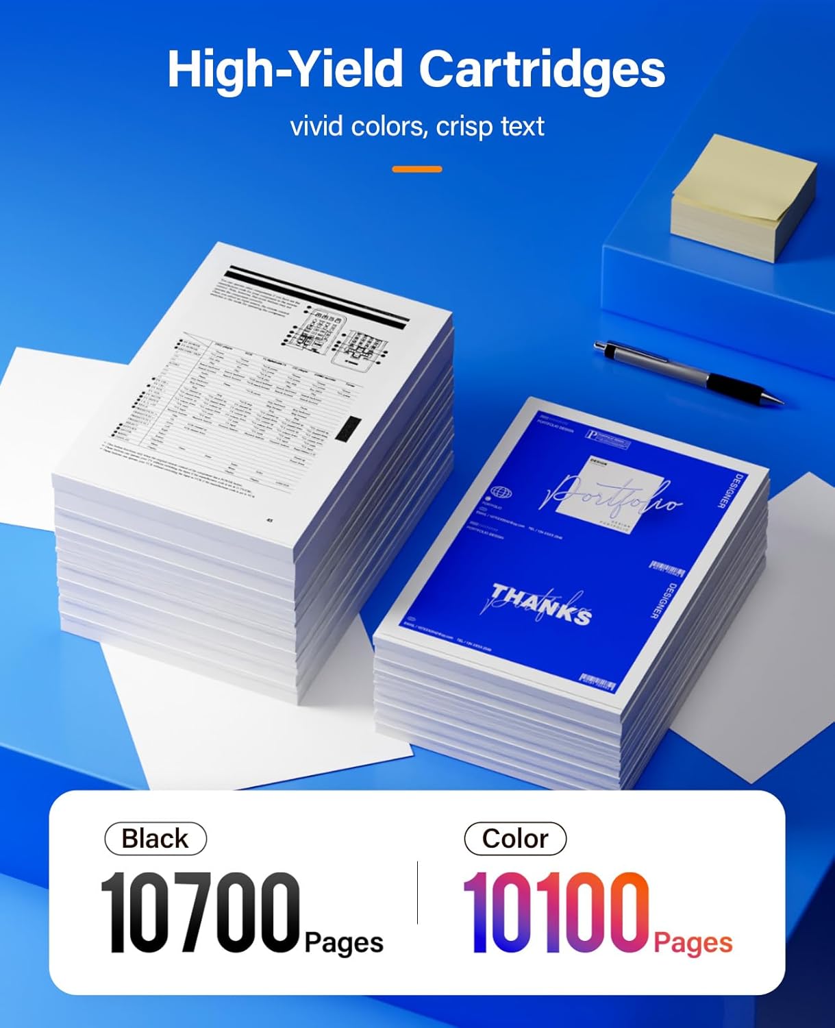 - High Page Yield: 10,700 pages for Black and 10,100 pages for Color toner cartridge (Letter/A4, at 5% coverage)